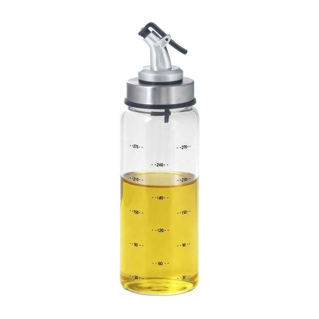 Praktische oliedispenser voor gourmetgebruik die een elegant ontwerp combineert met duidelijke maatstrepen voor optimale controle van de hoeveelheid olie of dressing.