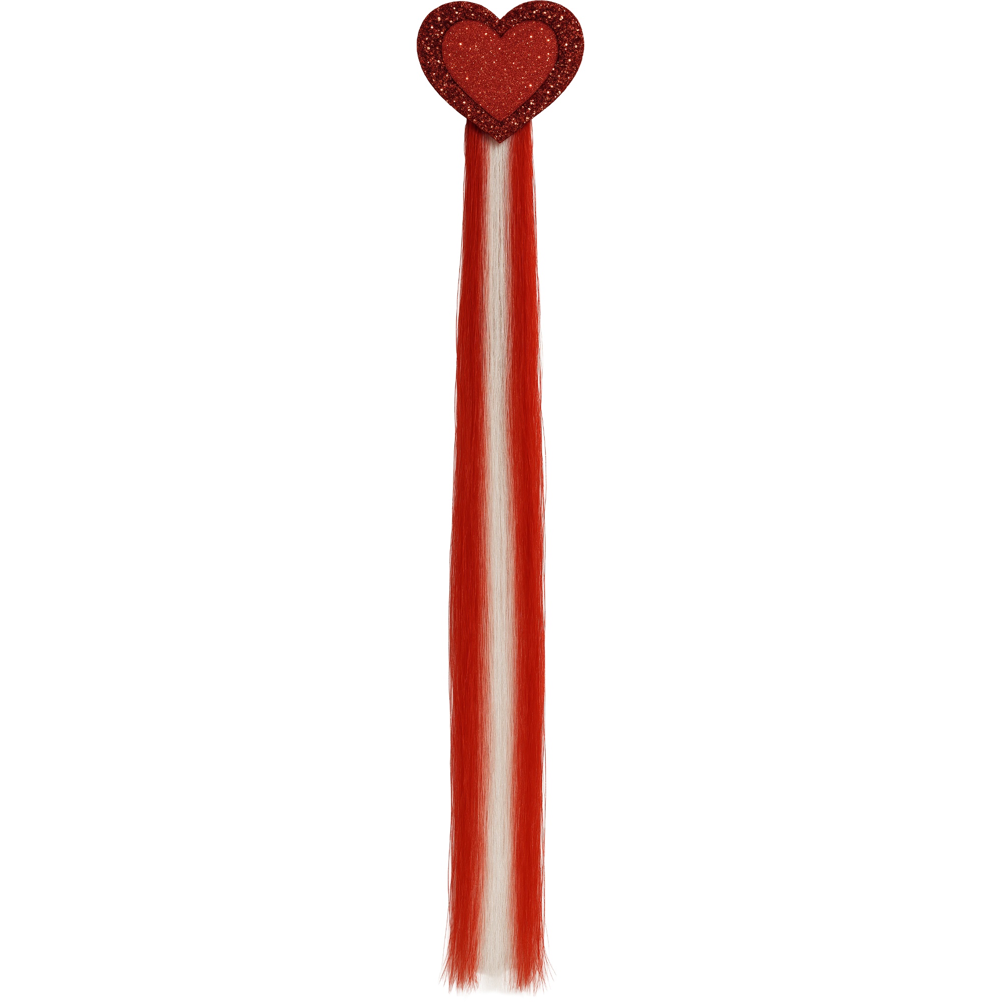 Geef je kapsel een romantische, kleurrijke touch met deze 40 cm haarlok met vilten hartje. Het decoratieve hartje houdt synthetische vezelstrips in rood en crème vast die natuurlijk vallen voor een opvallend effect. De onopvallende clip maakt het snel en gemakkelijk te bevestigen en te verwijderen zonder het haar te beschadigen. Licht en comfortabel, het voegt een speels en vrouwelijk accent aan je look toe.