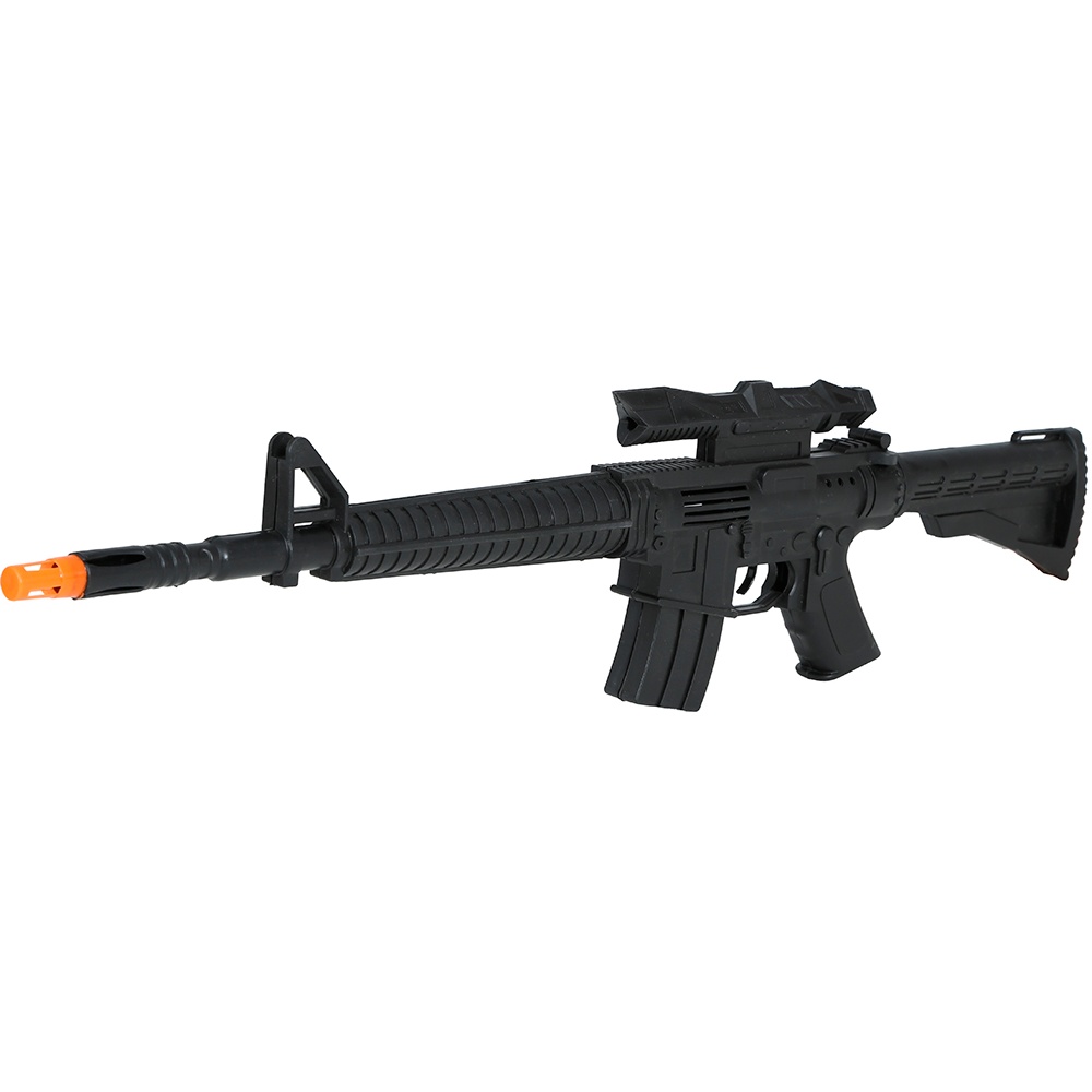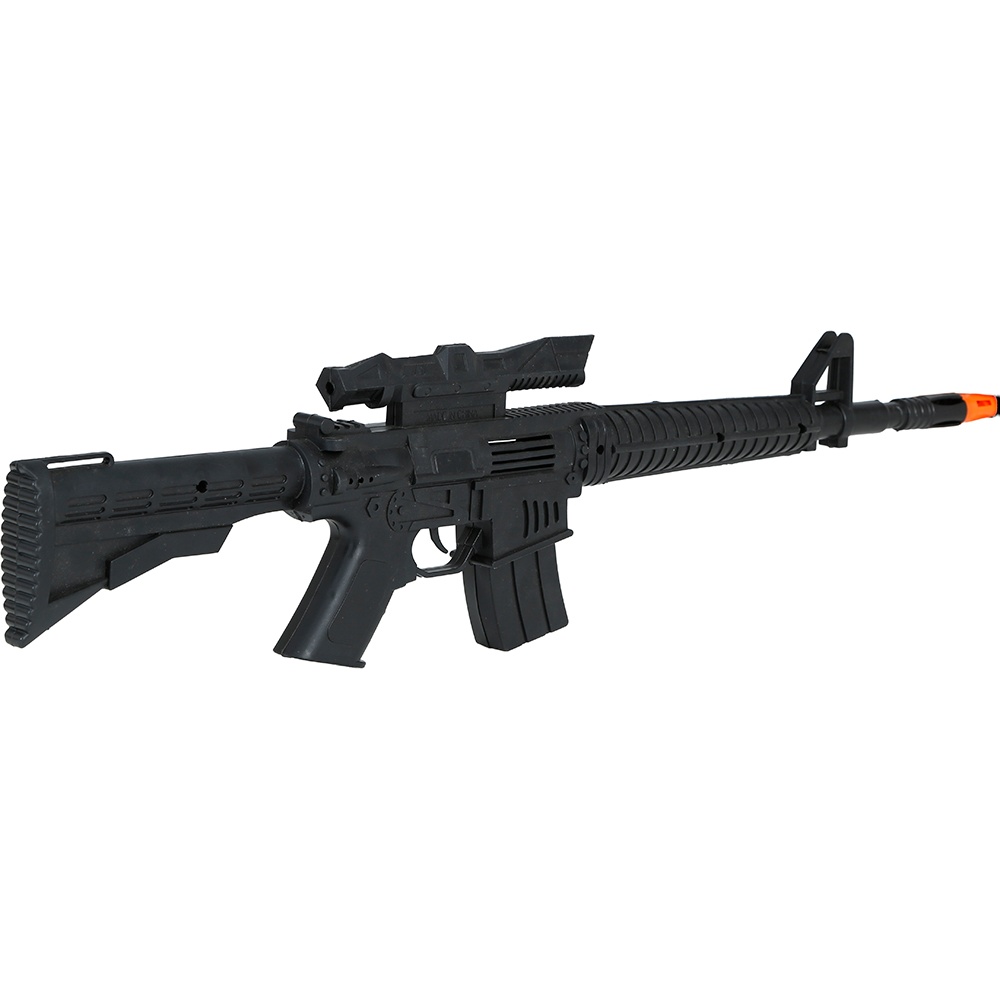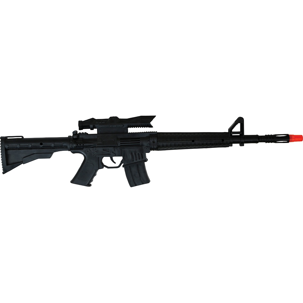 Speelgoed-aanvalsgeweer met realistische afwerking, ideaal om militaire, politie- of tactische kostuums compleet te maken. Het lichte PVC maakt het makkelijk hanteerbaar tijdens optochten en feesten. De zichtbare oranje punt geeft aan dat het om speelgoed gaat, voor extra veiligheid bij openbare evenementen. Geeft je outfit een authentieke uitstraling zonder een echt wapen te zijn - perfect voor Carnaval, vrijgezellenfeesten en thematische fotoshoots.