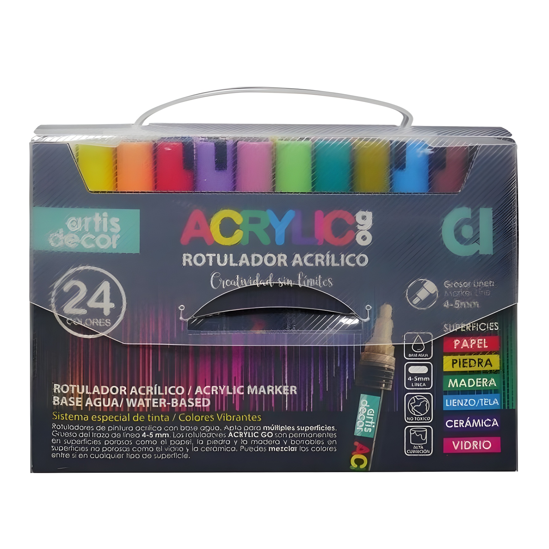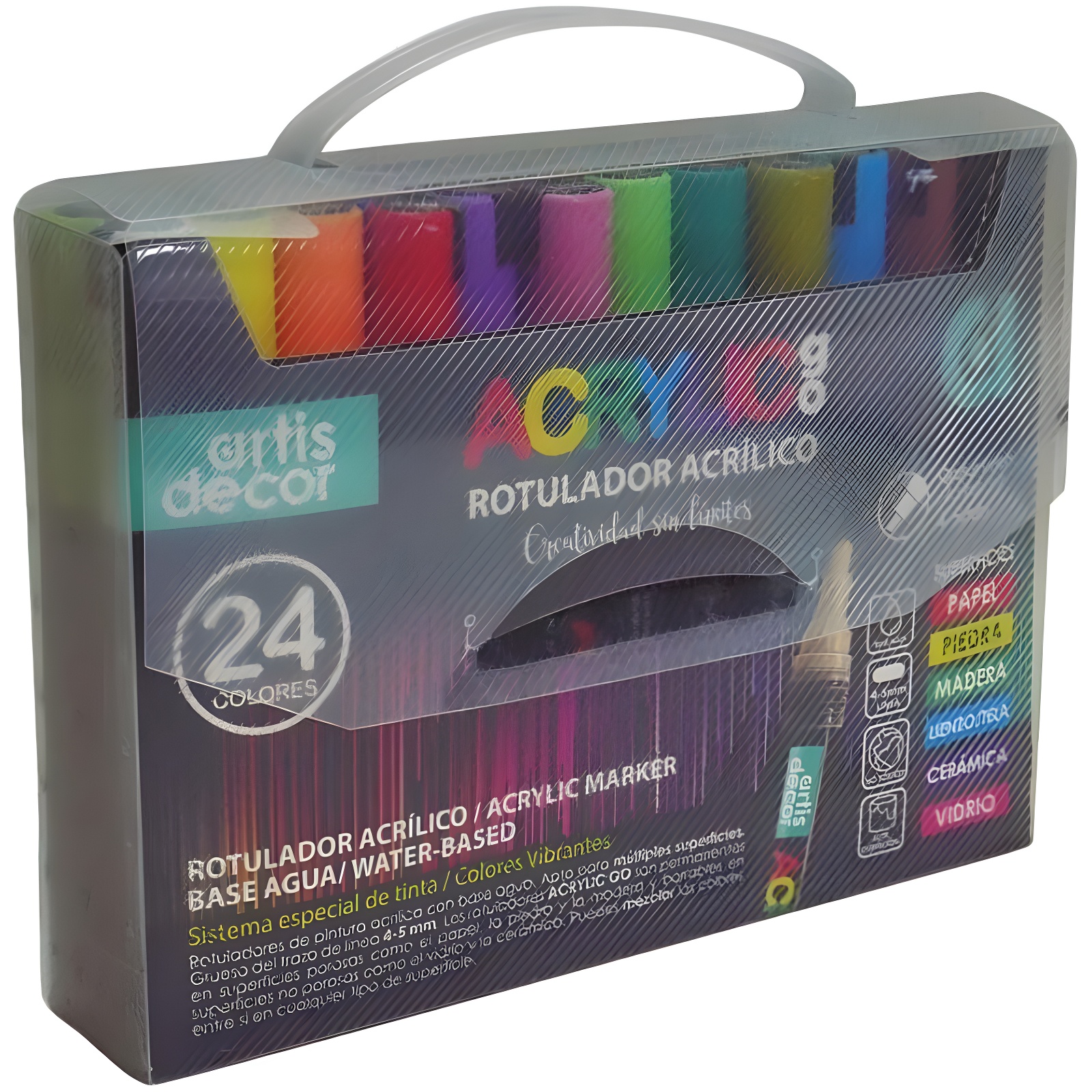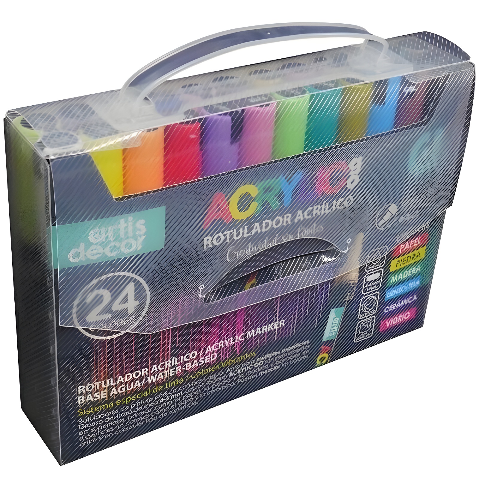 - Set van 24 acrylstiften op waterbasis.