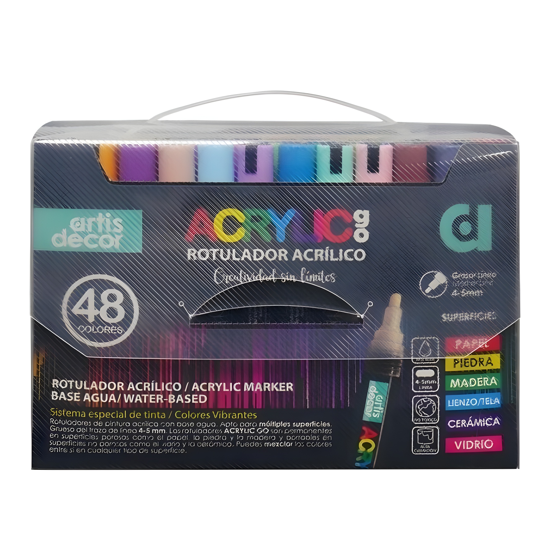 Acrylmarkers Acrylic Go 4-5 mm basiskleuren - Artis Decor - 48 stuks