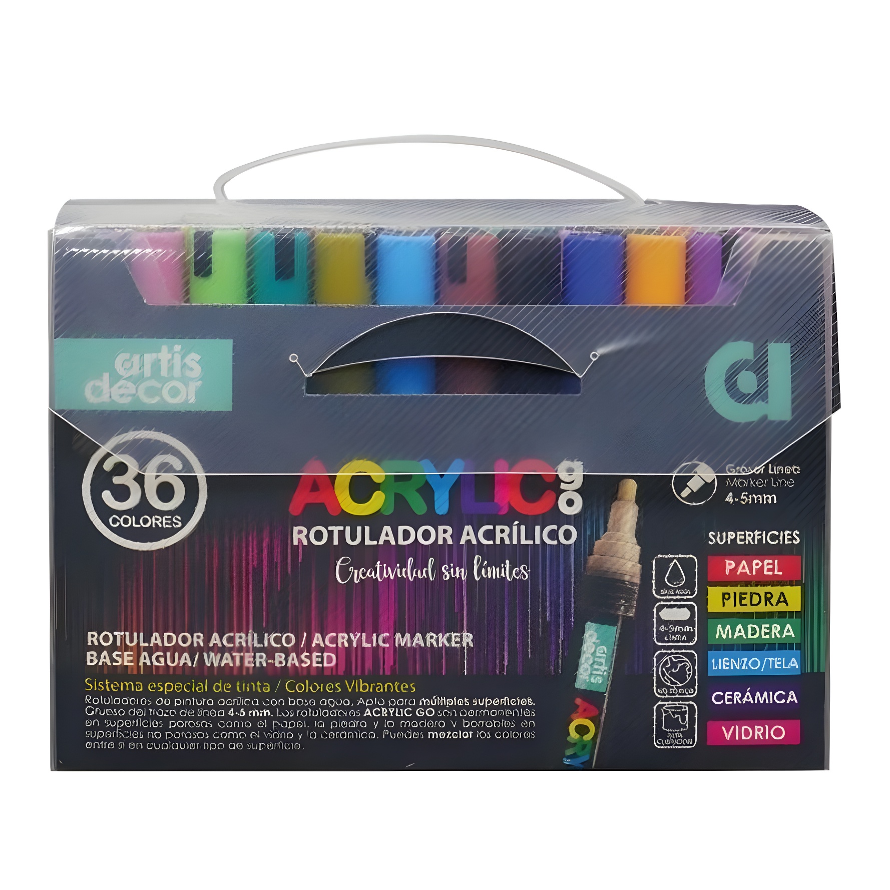 Acrylstiften Acrylic Go 4-5 mm basiskleuren - Artis Decor - 36 stuks