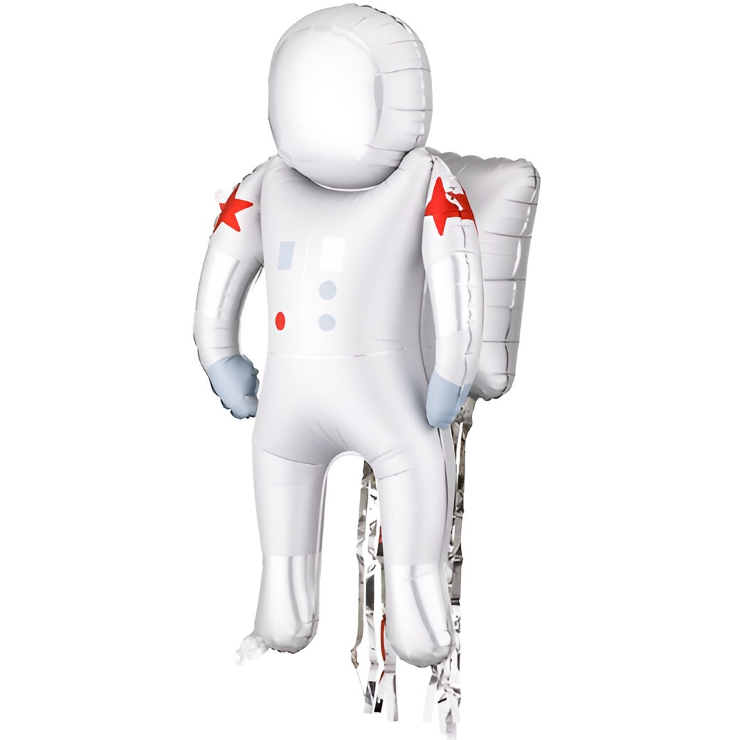 Foilballon in de vorm van een astronaut, zilverkleurig met rode en lichtblauwe details. Ontworpen om met lucht opgeblazen te worden en voegt een speels, opvallend element toe aan feesten en kinderpartijtjes. Afmetingen vóór opblazen: astronaut ca. 62 x 94,5 cm; rugzak ca. 32 x 40 cm. Afmetingen na opblazen: ca. 45 x 81 cm. Inclusief rietje voor handmatig opblazen. Perfect om photocalls, tafels of themahoekjes met een ruimtevaartthema te decoreren.