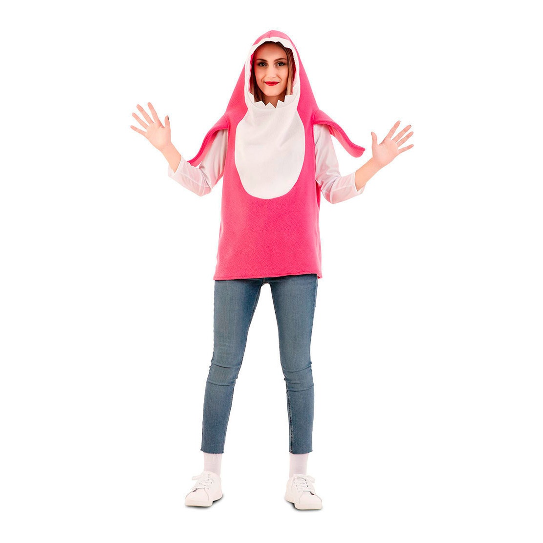 Een origineel kostuum geïnspireerd op de baby shark-tekenfilm.