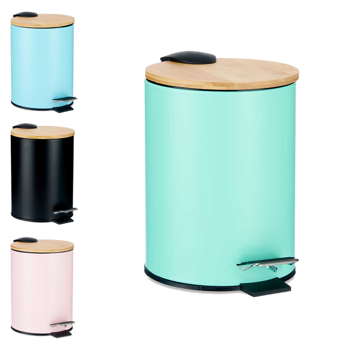 Badkamer prullenbak van 3 L in kleur met bamboe deksel