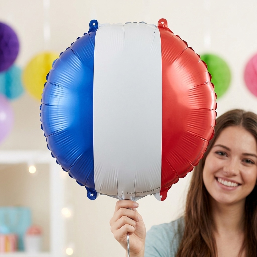 Folieballon in de kleuren van de Franse vlag, perfect voor een feestelijke touch bij vieringen en sportevenementen.