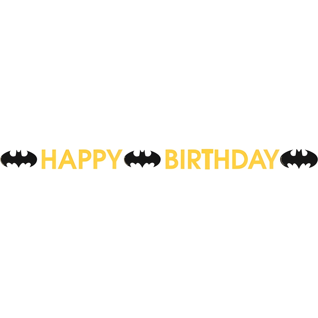 Decoratieve slinger met de tekst "HAPPY BIRTHDAY" en het iconische Batman-logo, ontworpen om kinderfeestjes sfeervol aan te kleden.