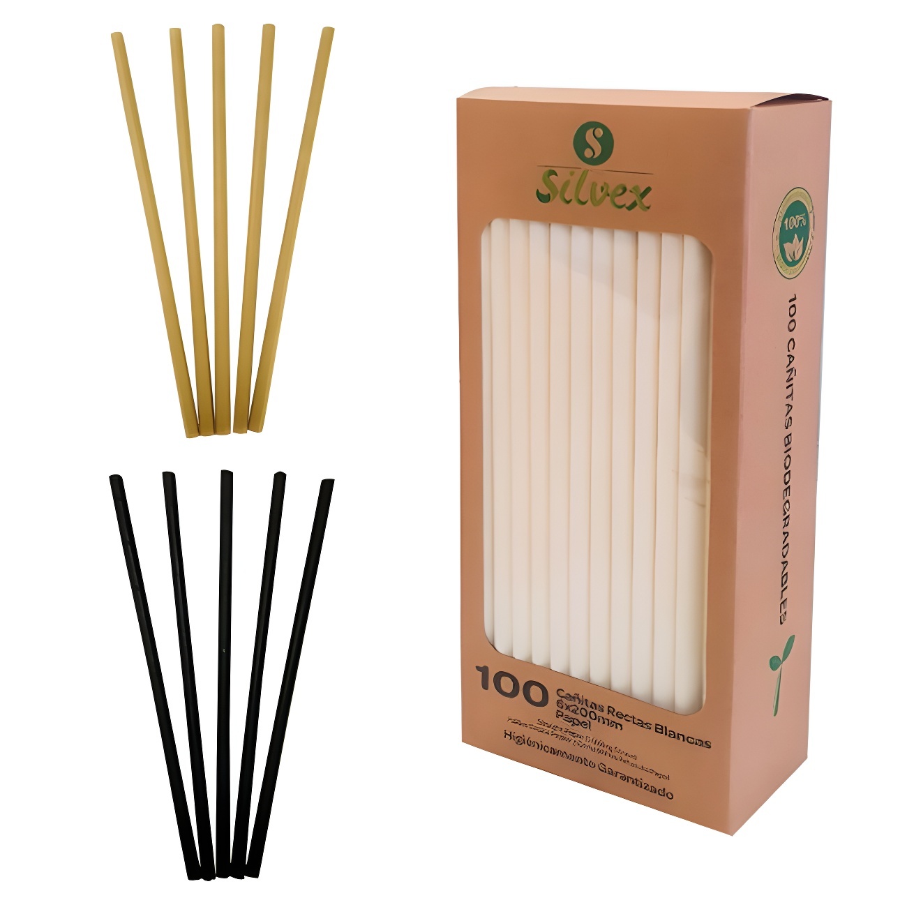 Biologisch afbreekbare papieren rietjes van 19,5 cm - 100 stuks