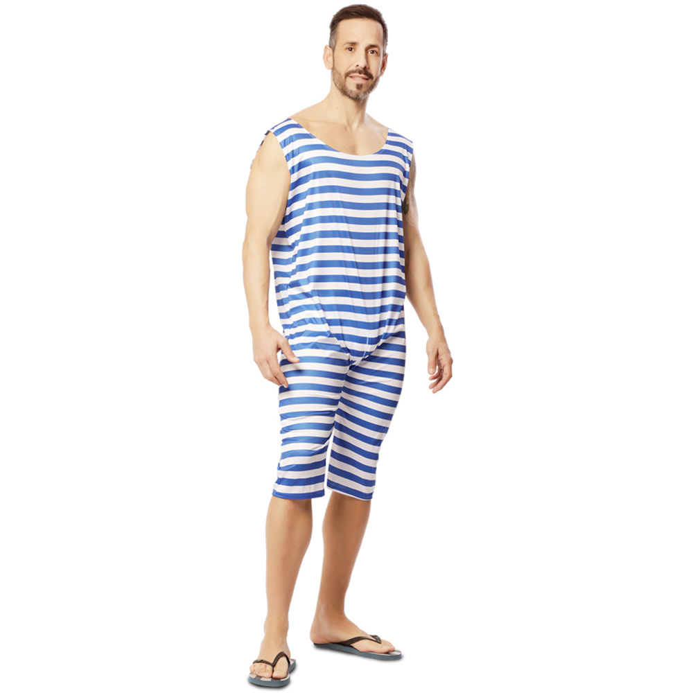Dit grappige herenzwempak, geïnspireerd op de badmode uit de jaren '20, is een originele blikvanger op elk zomers feestje.