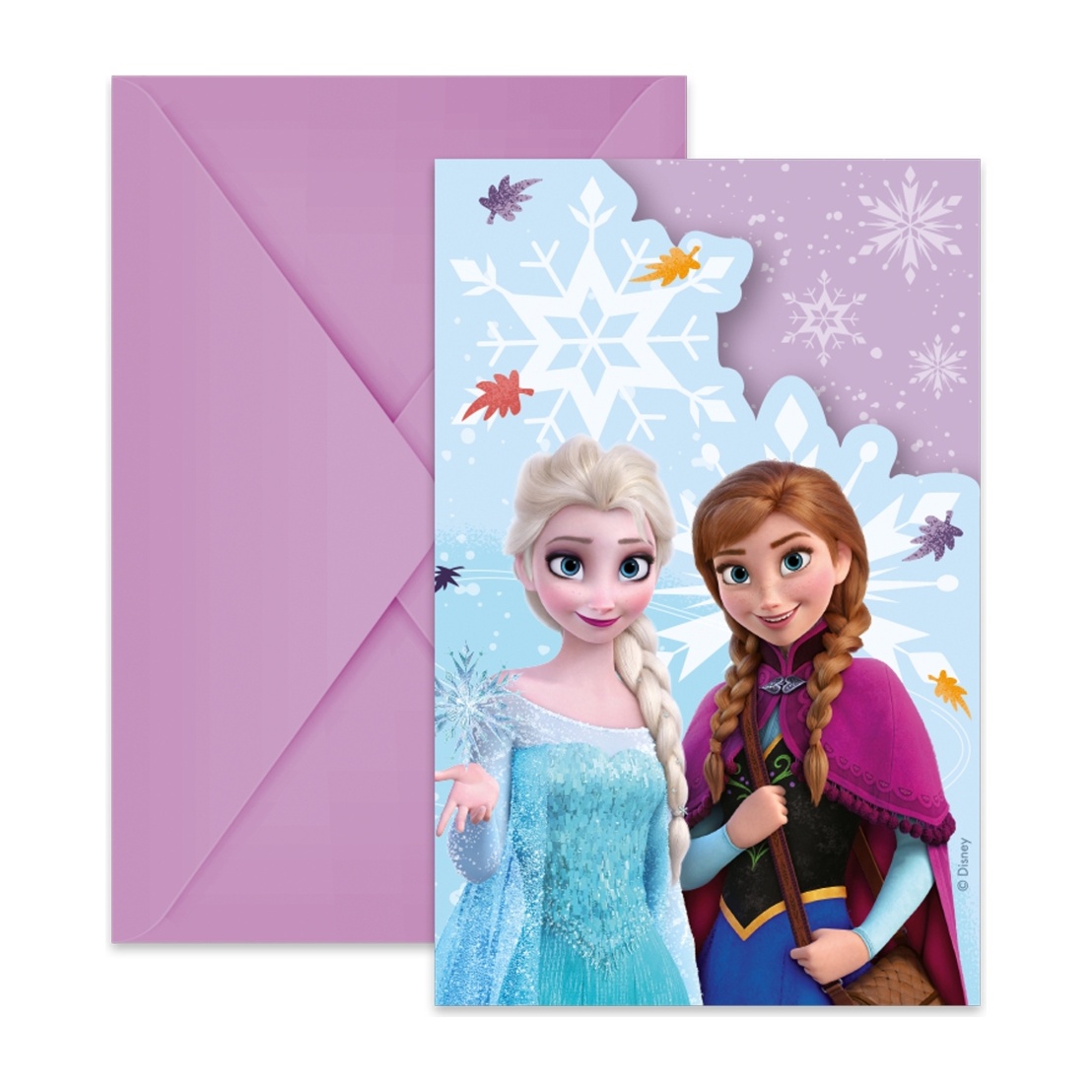 Uitnodigingen met het bekende ontwerp van Elsa en Anna, speciaal voor kinderfeestjes.