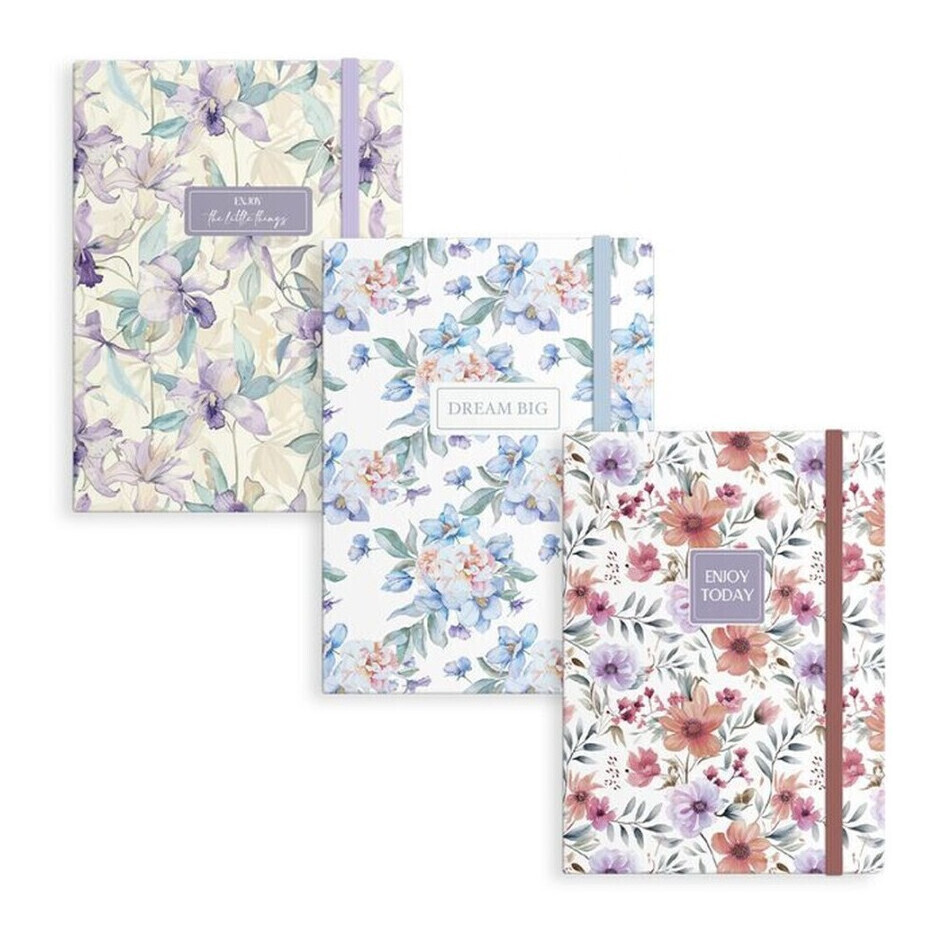Bloemen notitieboekje met elastiek 14,5 x 10,5 cm - 1 stuk