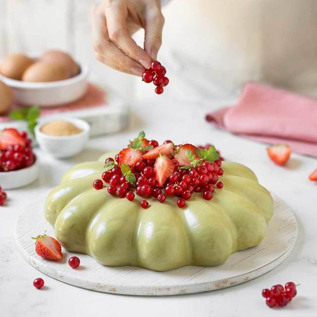 Je kunt een taart in de vorm van een bloem maken en deze decoreren met onze eetbare bloemen.