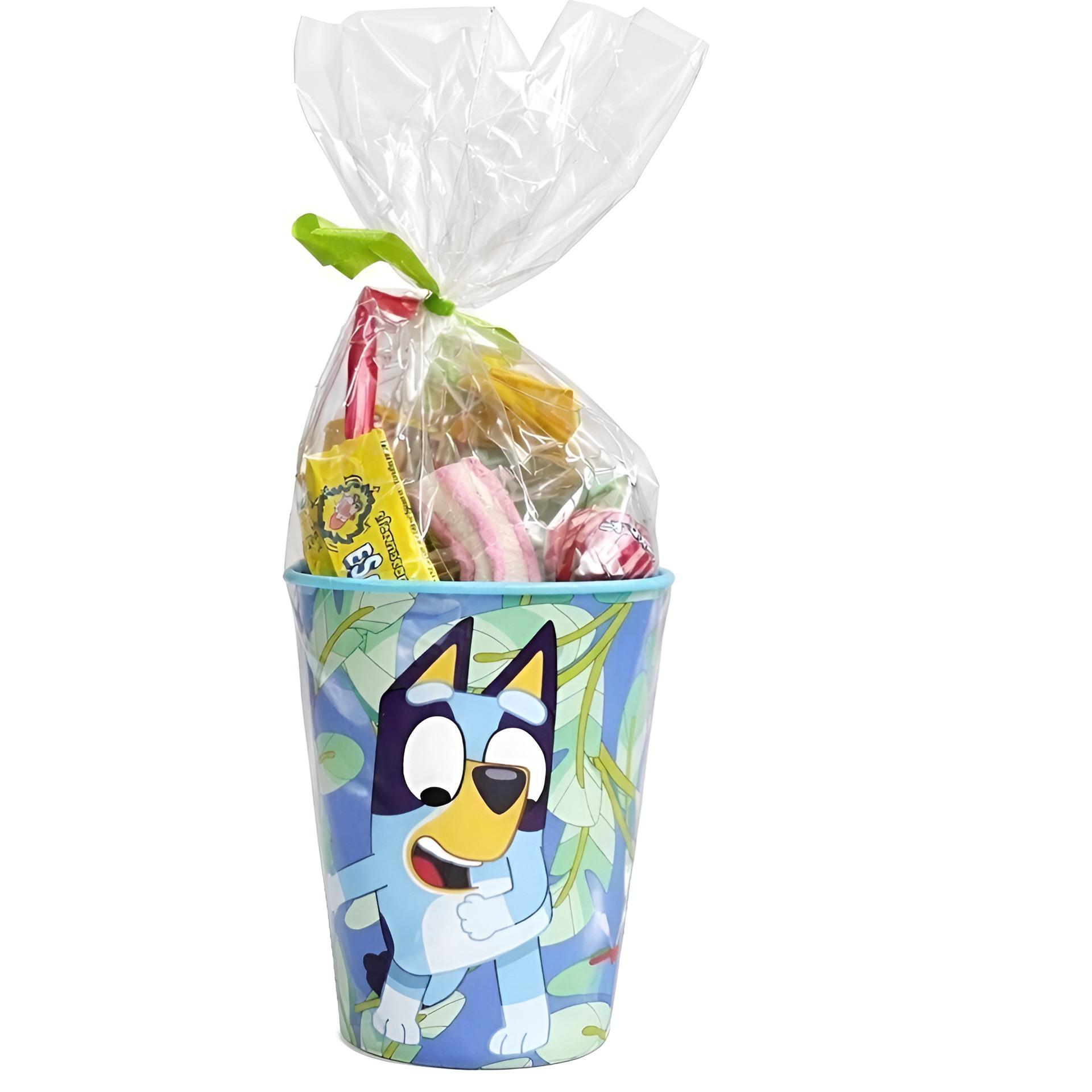 Ingrediënten lolly: suiker, glucosestroop, citroenzuur (E330), aroma's en kleurstoffen (E100, E160c, E120 of E163, E141, E150d).