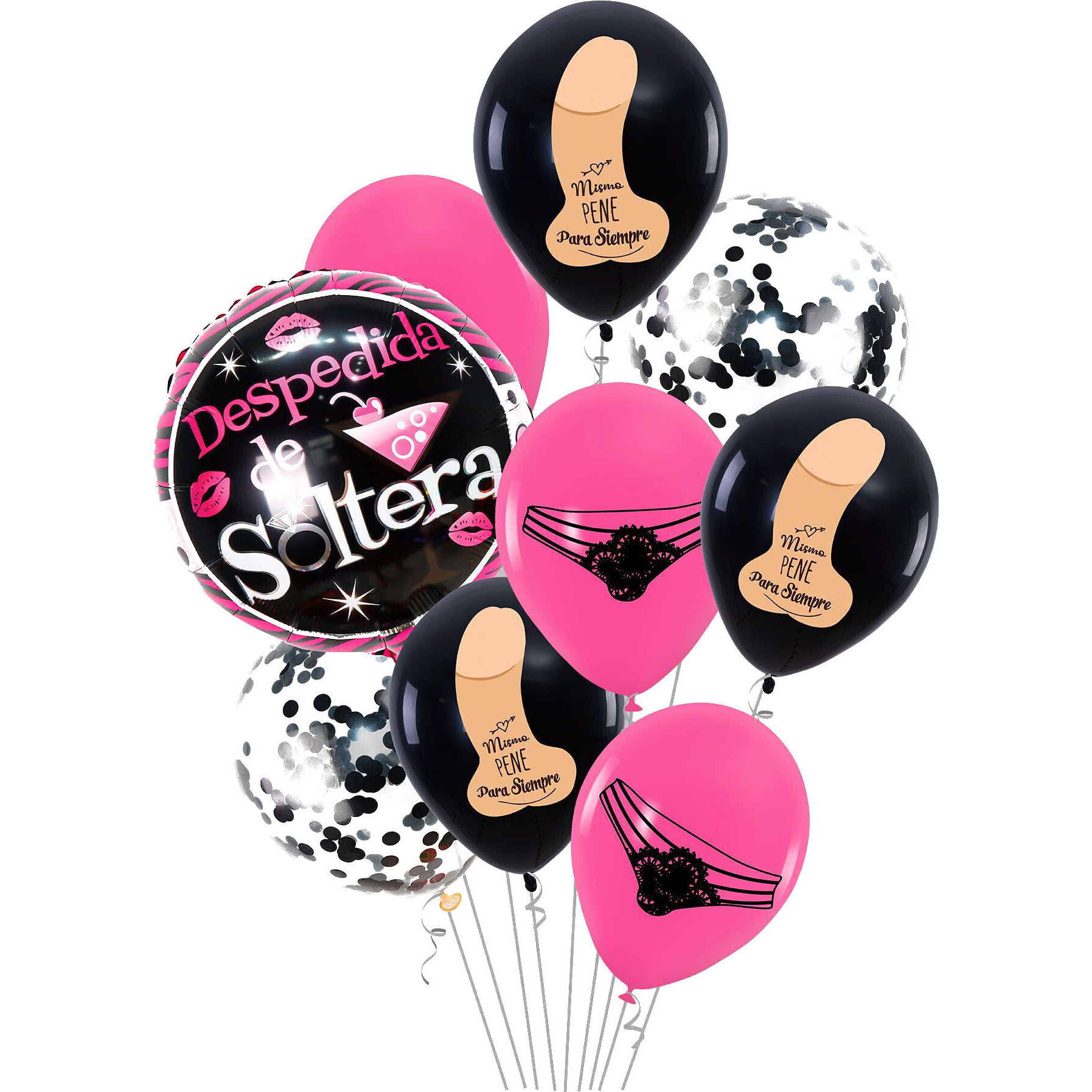 • Bevat 9 ballonnen, 8 van latex en 1 van folie.