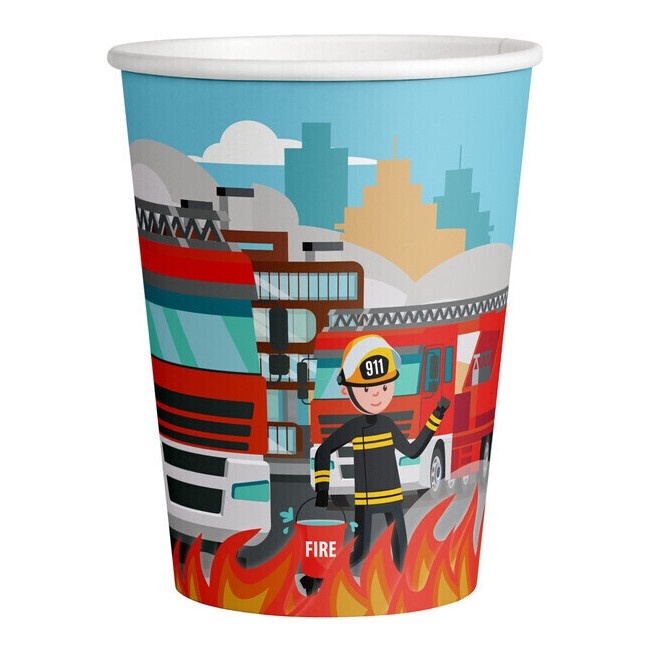 Maak de tafel voor je verjaardag compleet met deze kartonnen brandweermannenbekers, ideaal voor kinderfeestjes voor jongens en meisjes.