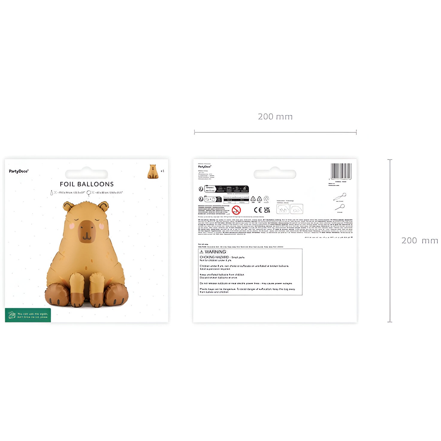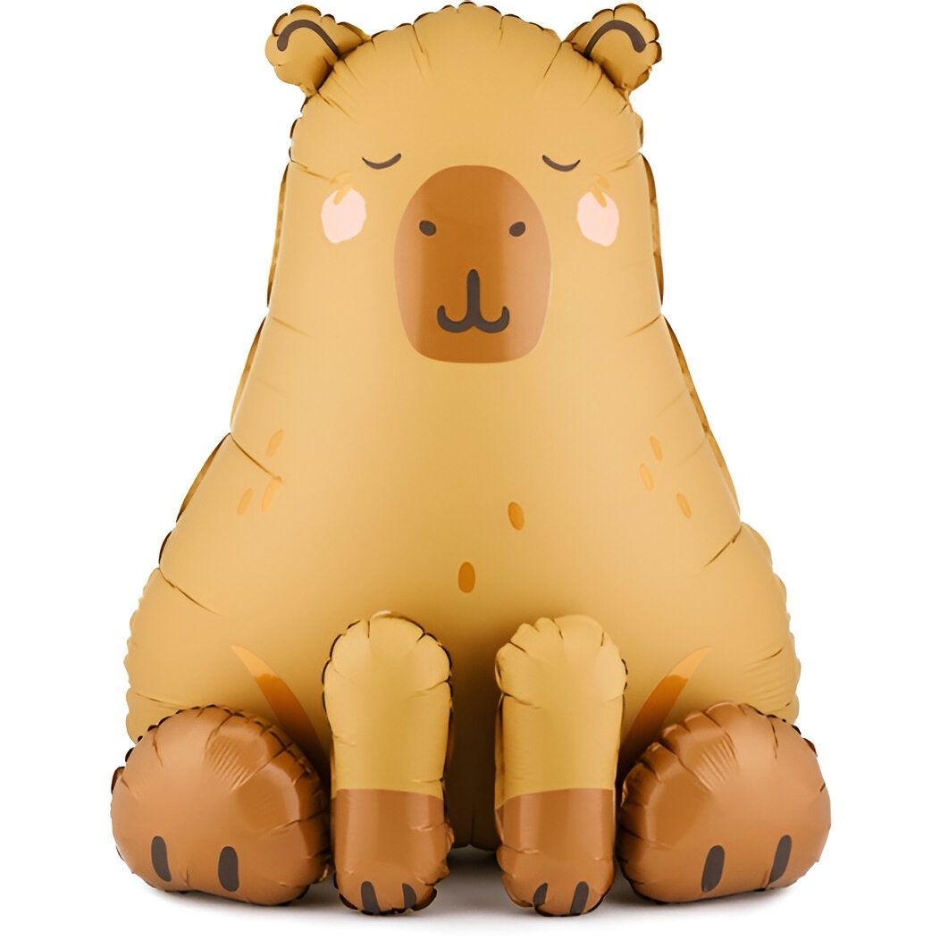 Kawaii-geïnspireerde capibara-ballon, ideaal om sfeer te creëren bij kinderfeestjes. Donkergeel en beige met een glanzende finish voor een vriendelijk en opvallend accent. Afmetingen voor het opblazen ca. 79,5 x 94 cm; na opblazen ca. 63 x 80 cm. Ontworpen om met lucht te vullen en eenvoudig als decoratie te plaatsen op tafels, bij photocalls of in themahoekjes.