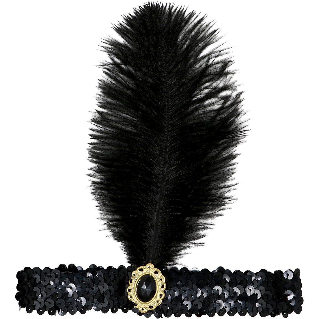 - Jaren 20-look met glanzende details en een veer voor een glamoureuze afwerking.