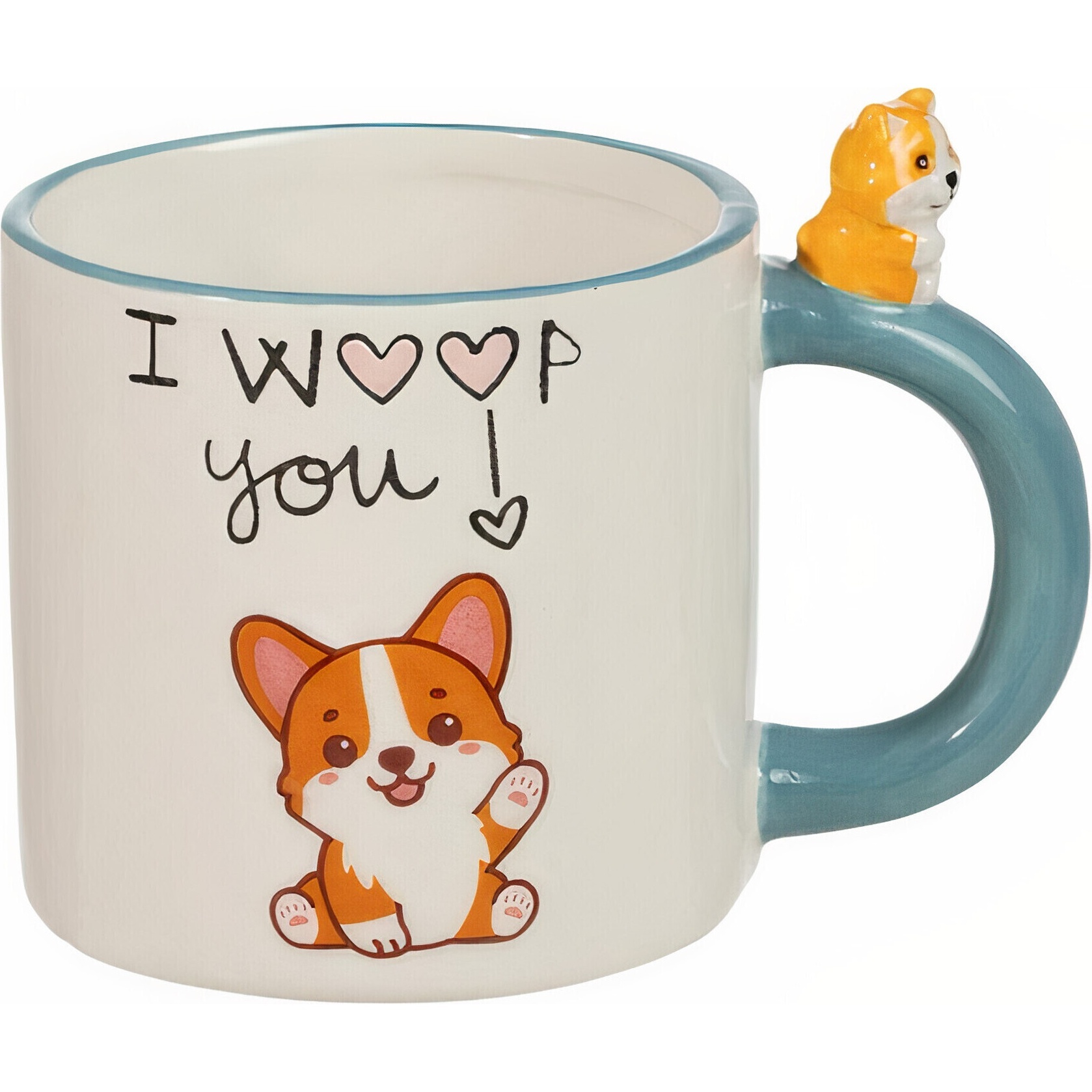 - Schattig ontwerp met corgi-illustratie en een 3D-figuurtje op het handvat dat visueel opvalt.