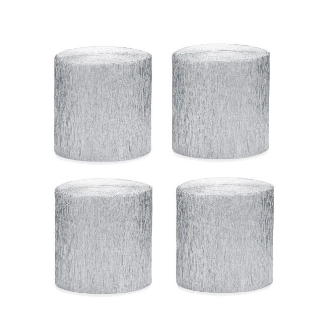 Bestaat uit een pakket dat 4 rollen metallic-ogend crêpepapier bevat.