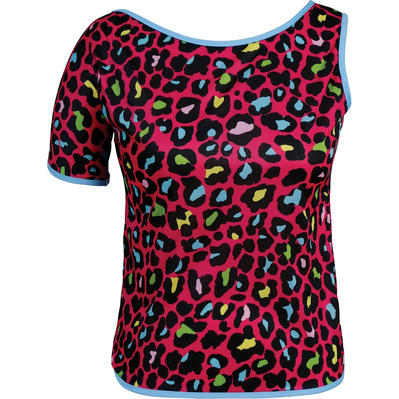 Een T-shirt met jaren 80-inspiratie en neon luipaardprint dat alle blikken trekt. De comfortabele snit met korte mouwen is bedoeld voor volwassenen die een speelse, retro-look zoeken. De polyesterstof is licht en valt mooi, terwijl de felle kleuren goed bewaard blijven. Perfect om te combineren met neonaccessoires en feestelijke, vintageachtige outfits. Breng je feest tot leven met een kleurrijke 80s-touch.