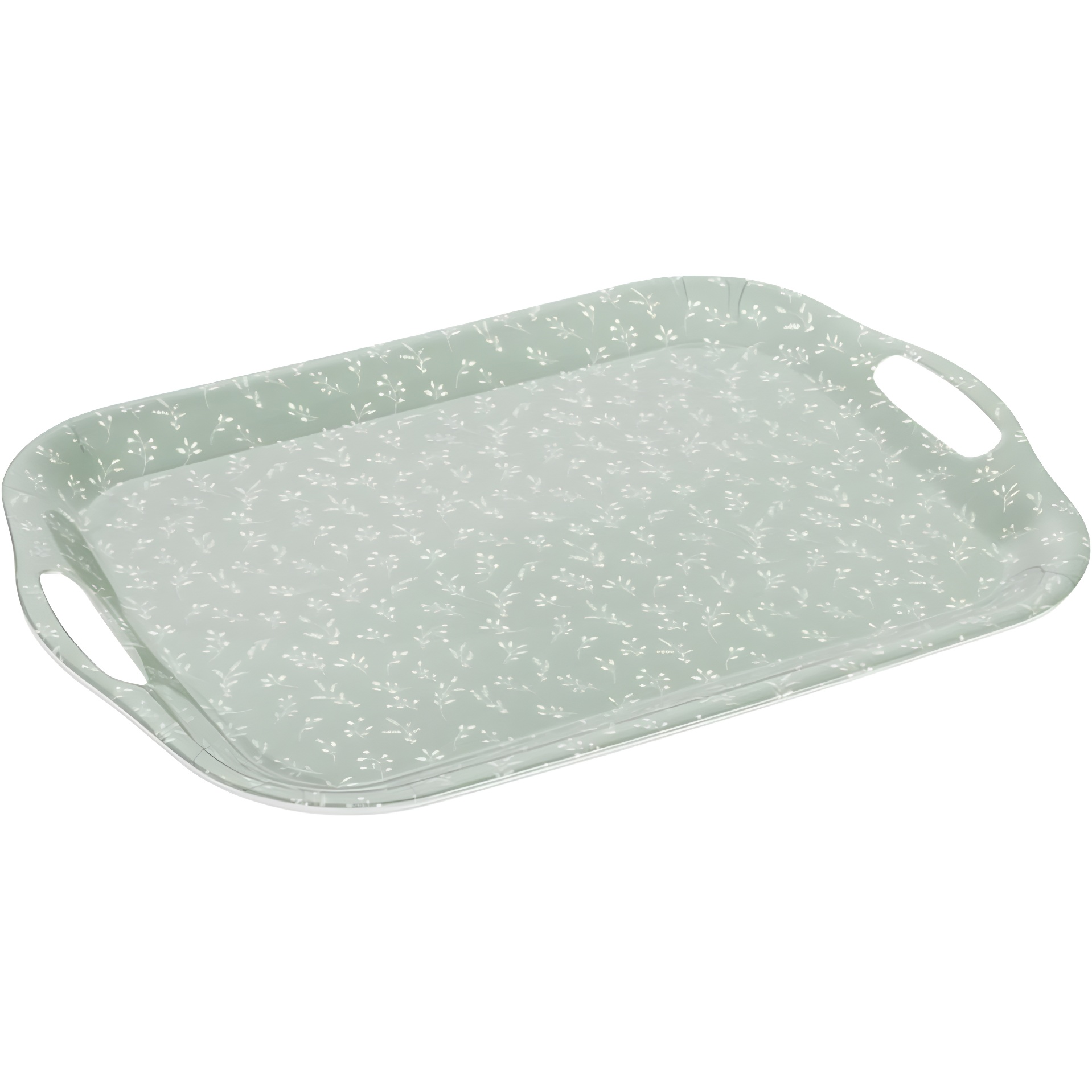 Elegant vormgegeven dienblad met groen bladmotief dat een natuurlijke toets aan elke tafel geeft. De lichte constructie maakt vervoer gemakkelijk, terwijl het de stevigheid biedt die nodig is voor dagelijks gebruik.