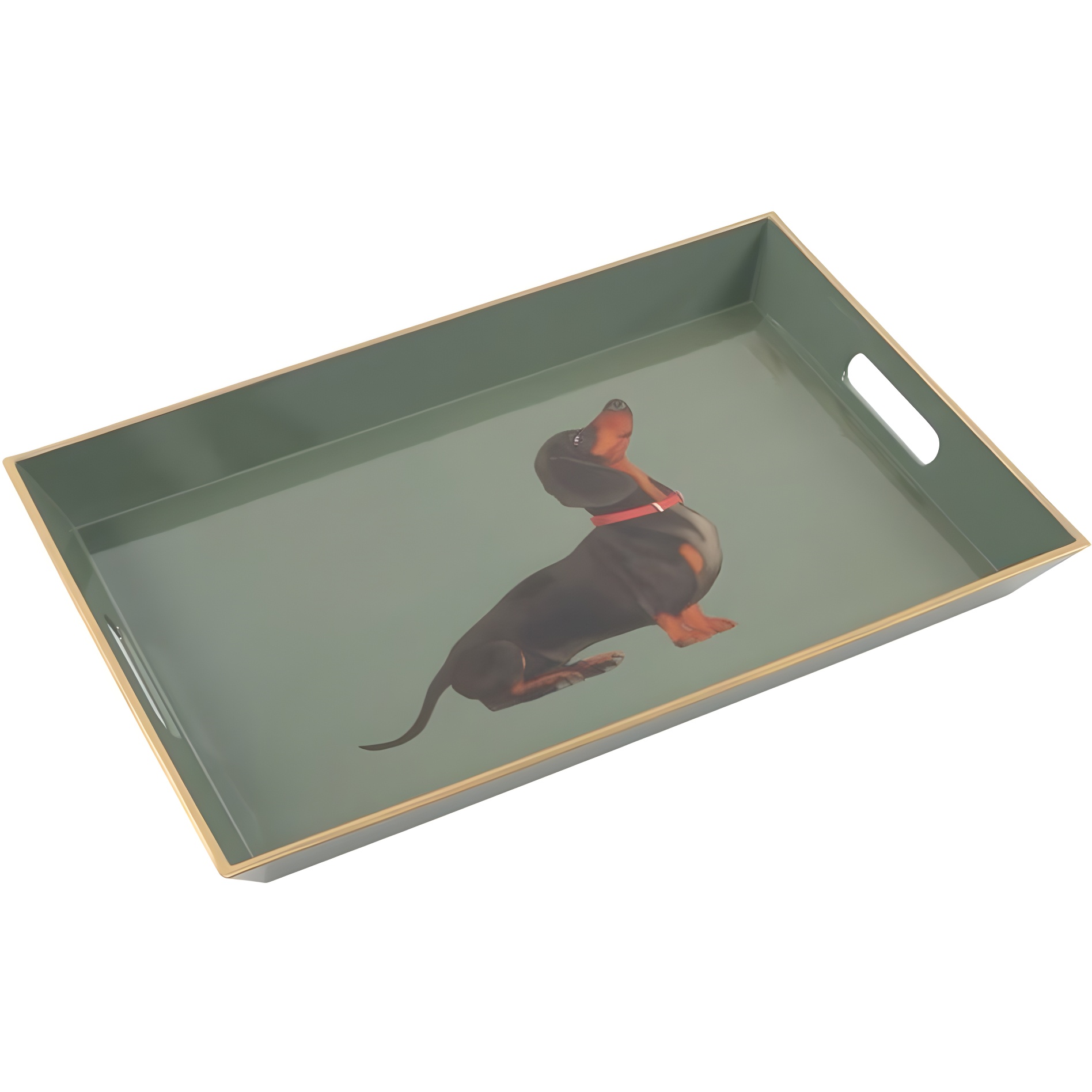 Stijlvol decoratief dienblad met teckelillustratie, ontworpen voor hondenliefhebbers.