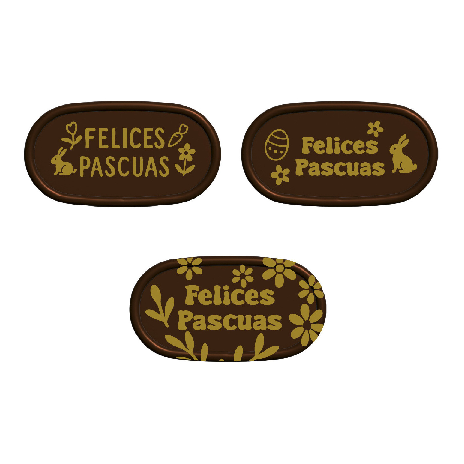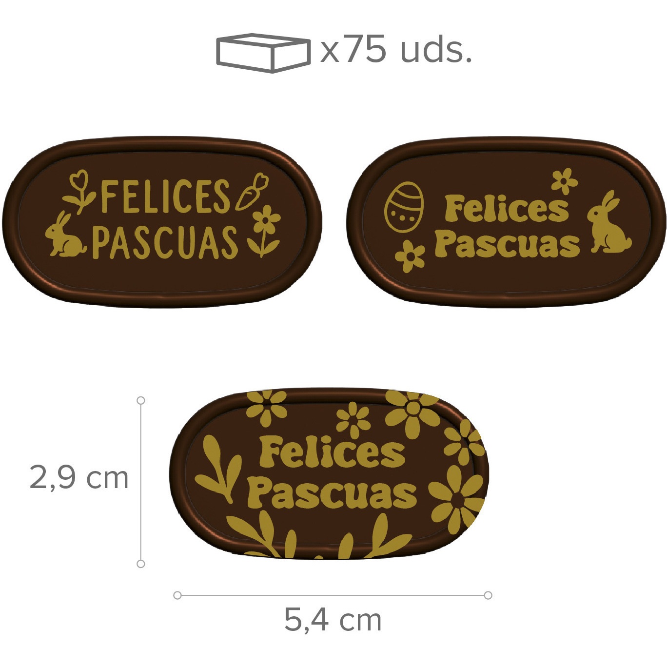 Donkere chocoladelabels 'Felices Pascuas' 5,4 x 2,9 cm - 75 stuks