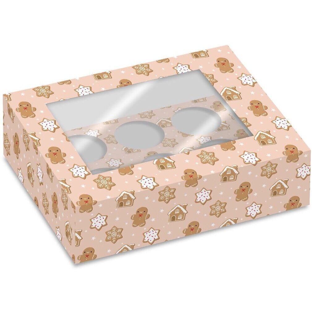 Doos voor 6 cupcakes met gemberkoekmannetje - 2 stuks