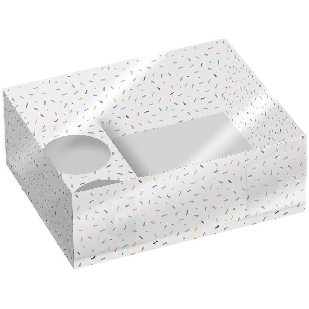 Doos van 26 x 20 x 9 cm voor cupcakes en zoetigheden met sprinkles - 2 stuks