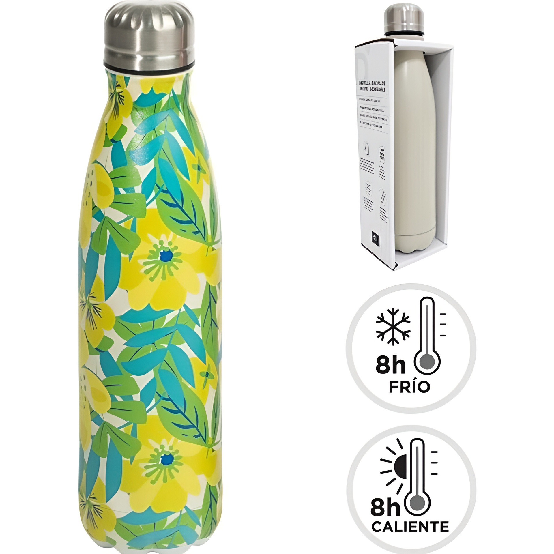 Dubbelwandige thermosfles met een levendige tropische print die stijl toevoegt aan je dagelijkse routine. Ontworpen om de temperatuur van je dranken te behouden, houdt hij ze urenlang koel of warm. Het compacte formaat en de veilige sluiting maken hem praktisch om in je tas of rugzak mee te nemen. Een duurzame en stijlvolle keuze om het gebruik van wegwerpverpakkingen te verminderen.