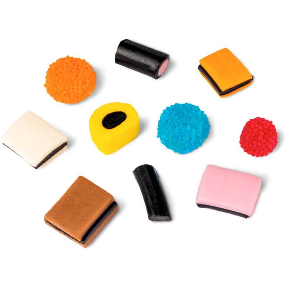- Mix van drop met smaken van citroen, braam, aardbei, sinaasappel, chocolade.