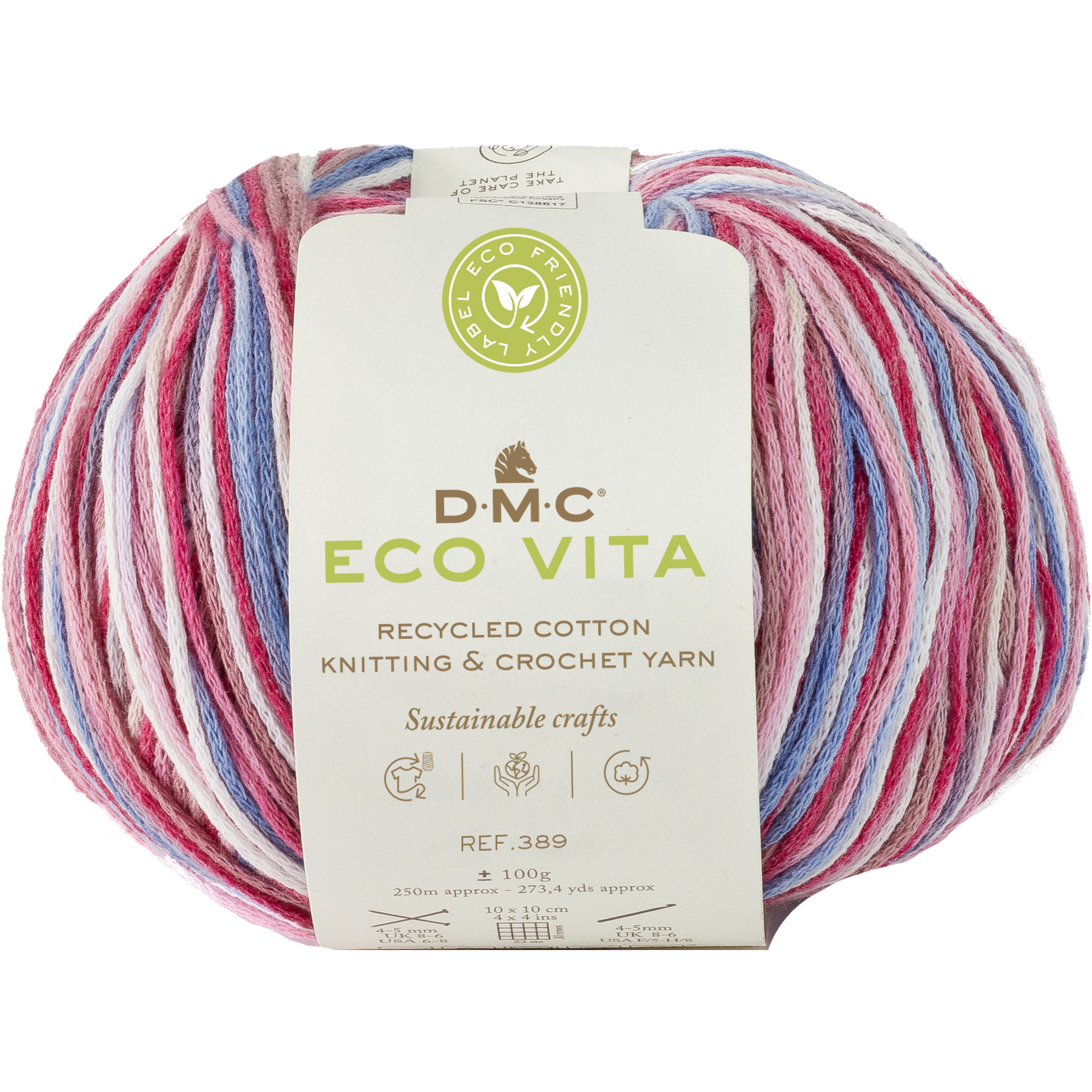 Gemaakt van vermalen textielrestanten en opnieuw gesponnen garen, dit milieuvriendelijke garen is verkrijgbaar in zes levendige multicolor tinten, waardoor je prachtige kleurverlopen krijgt zonder steeds van bol te hoeven wisselen.
