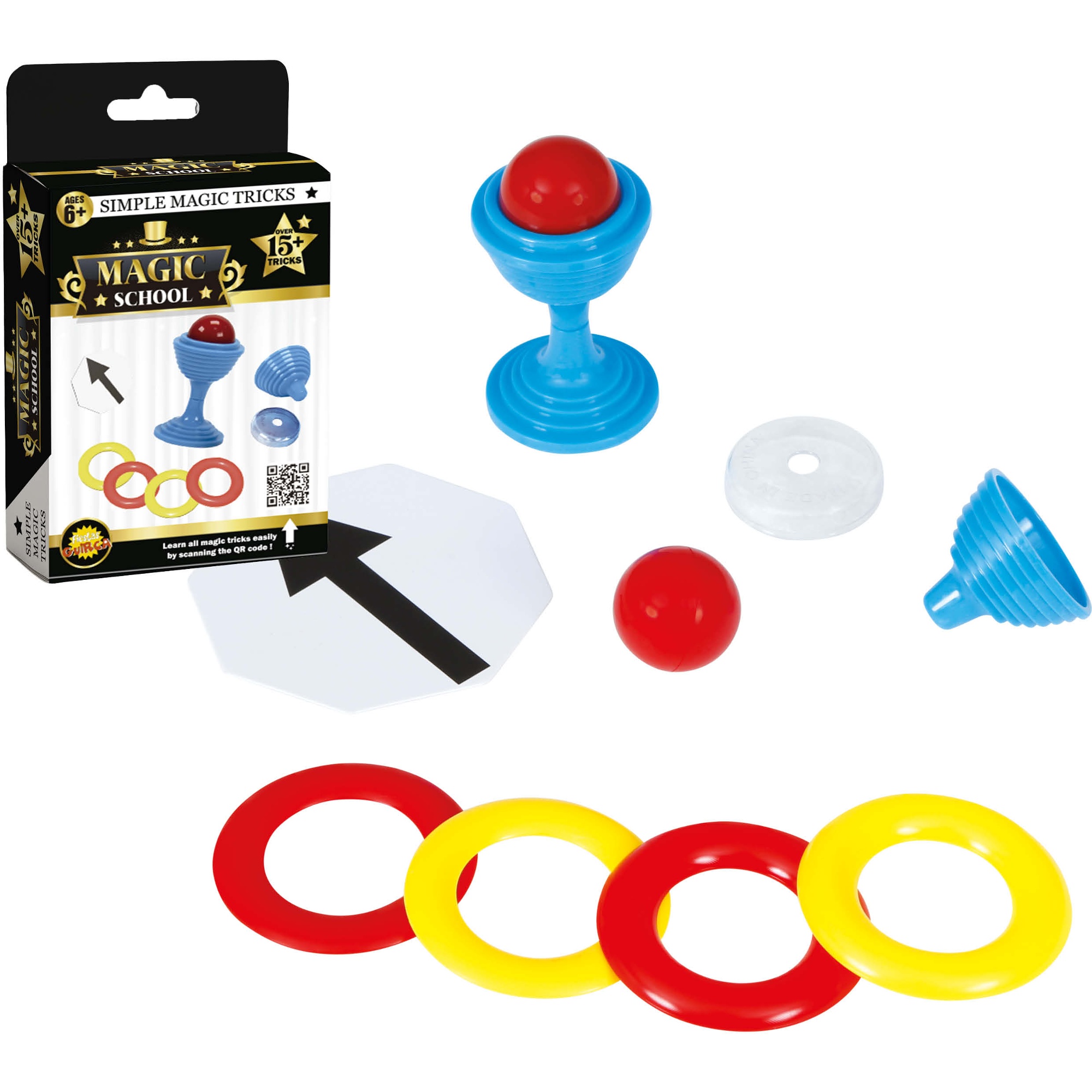Veel plezier en verras iedereen met deze kindergochelset, speciaal ontworpen voor beginners. De set bevat 12 eenvoudige trucs waarmee je stap voor stap basistechnieken leert en al bij de eerste oefening indrukwekkende effecten bereikt. Stevige, gekleurde PVC-onderdelen in een formaat dat geschikt is voor kleine handjes, waardoor veilig oefenen mogelijk is. Bevordert fijne motoriek, creativiteit en zelfvertrouwen voor een publiek, en is bovendien een uitstekend cadeau of leuke aanvulling op kinderfeestjes.