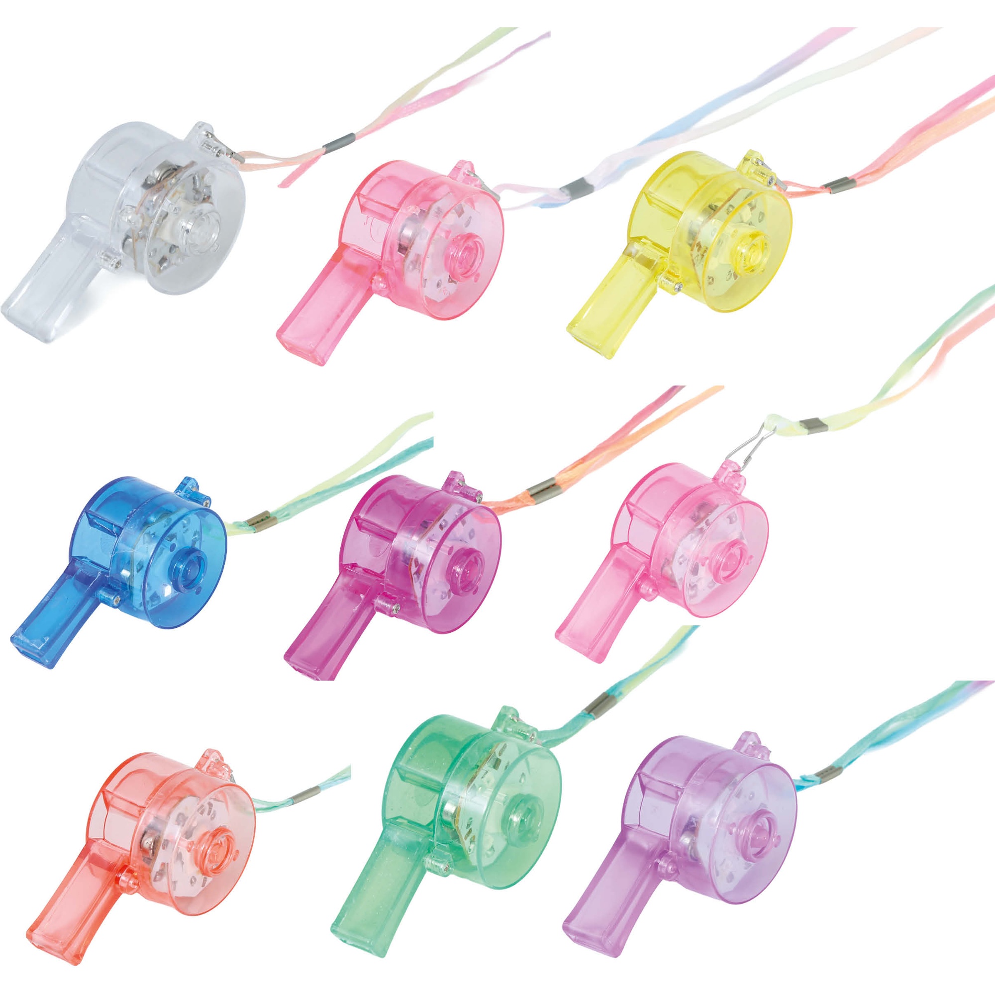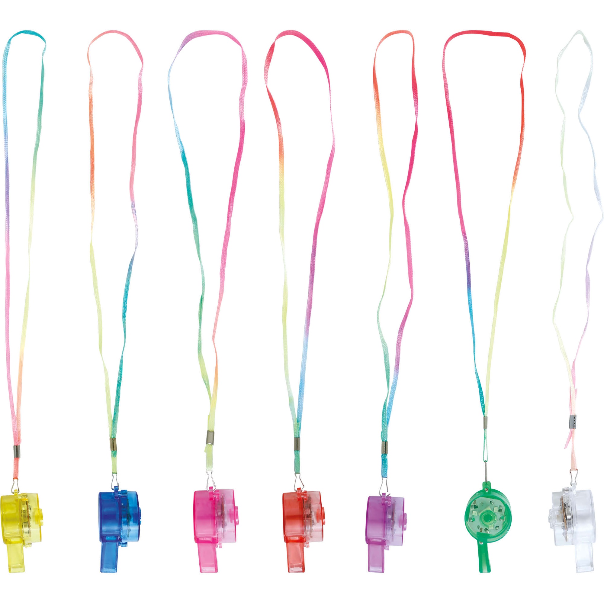 Verlicht fluitje met geïntegreerde LED dat kleur en plezier toevoegt aan elke viering. Ideaal voor kinderanimatie, optochten en avondfeesten. Het koord zorgt ervoor dat je het fluitje om de nek kunt dragen, zodat het altijd binnen handbereik is. Het compacte, opvallende ontwerp valt bij kinderen in de smaak en brengt extra sfeer op evenementen.