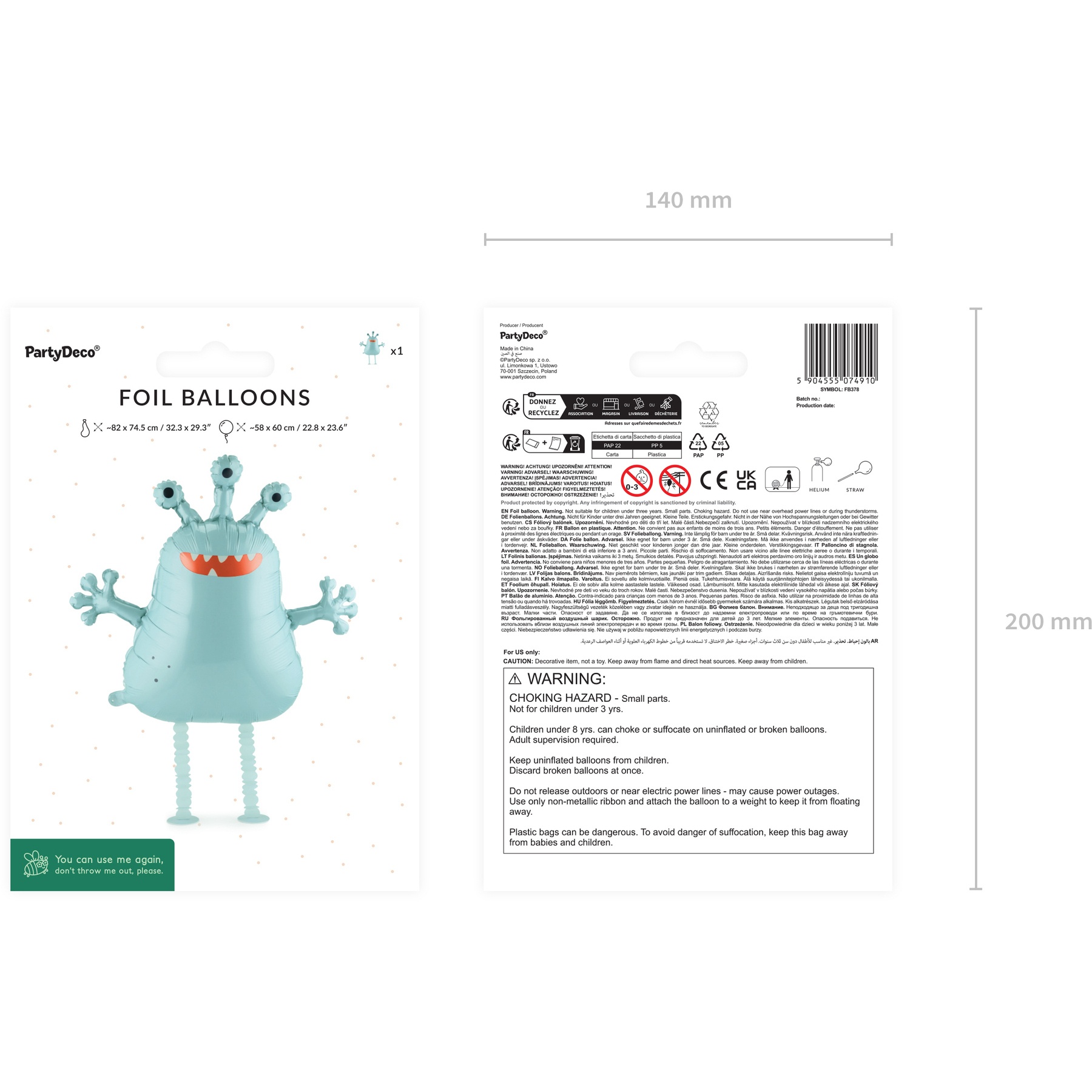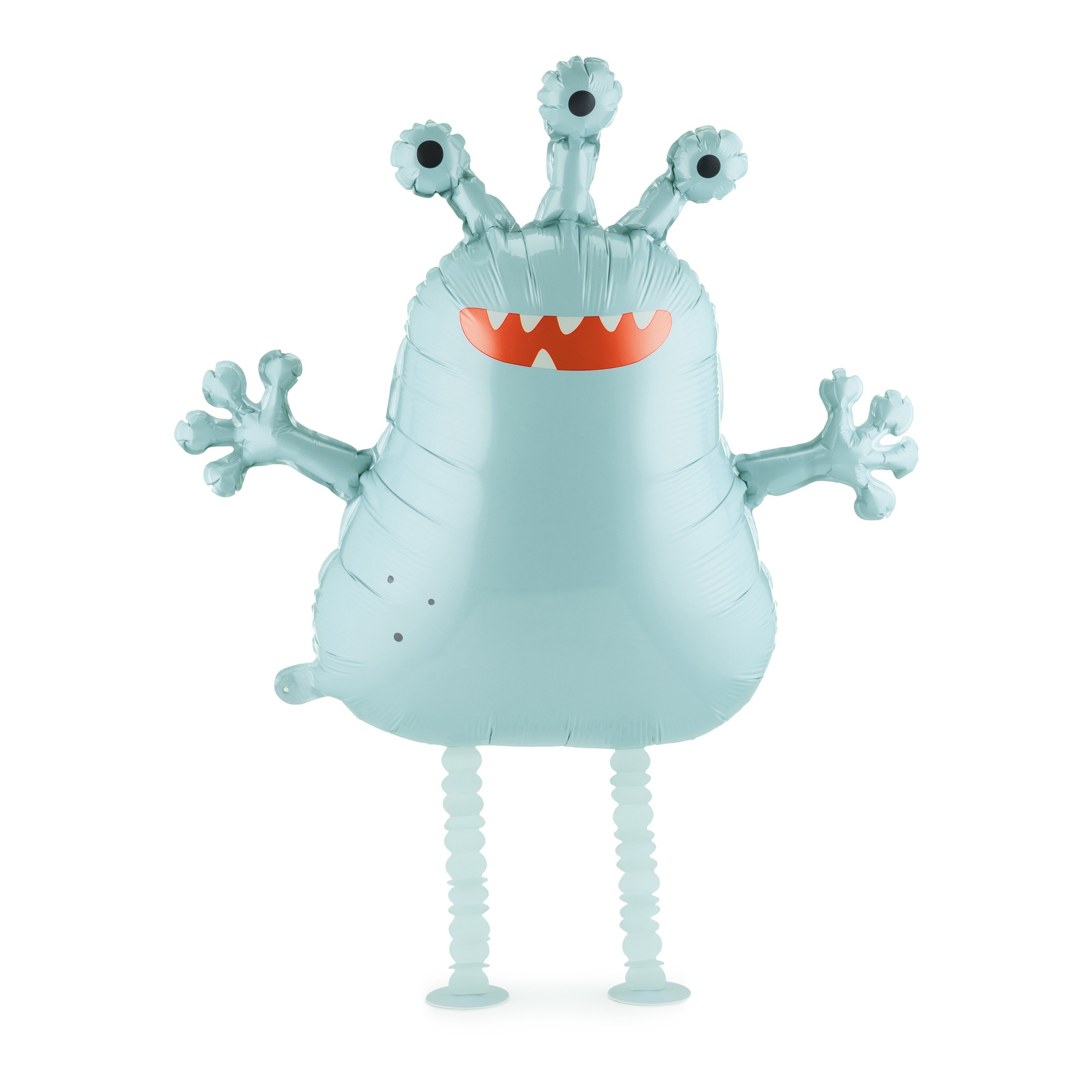 Folieballon met een vrolijk ontwerp van een lopende alien in zacht poederblauw. Afmetingen vóór opblazen ca. 82 x 74,5 cm; na opblazen ca. 58 x 60 cm. Poten van ongeveer 25 cm zorgen voor extra beweging en presence.