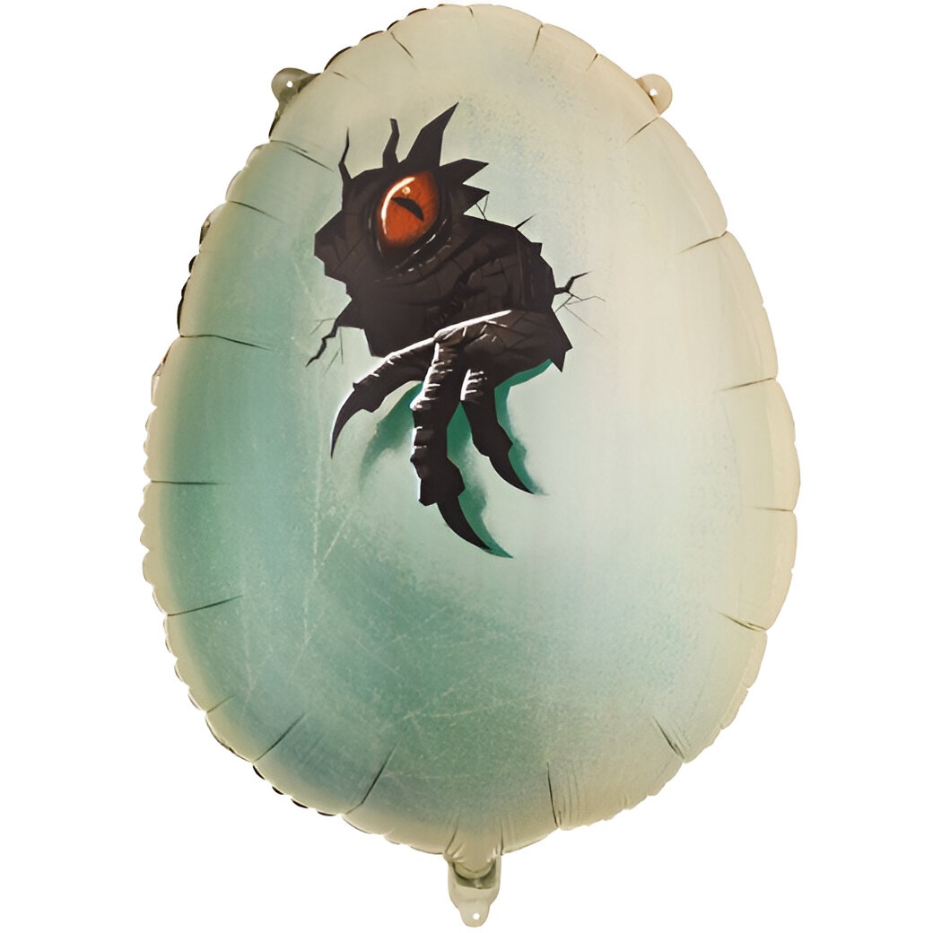 Jurassic World folieballon, ontworpen als dinosauriusei met een realistische print van oog en klauw. Afmetingen vóór oppompen: ca. 63 x 75 cm (25 x 29.5"). Afmetingen na oppompen: ca. 48 x 64 cm (18.9 x 25.2"). Geschikt voor oppompen met lucht en helium; de ballon is zelfsluitend en heeft ophangringen om eenvoudig te hangen en te decoreren. Inclusief rietje voor gemakkelijk oppompen.