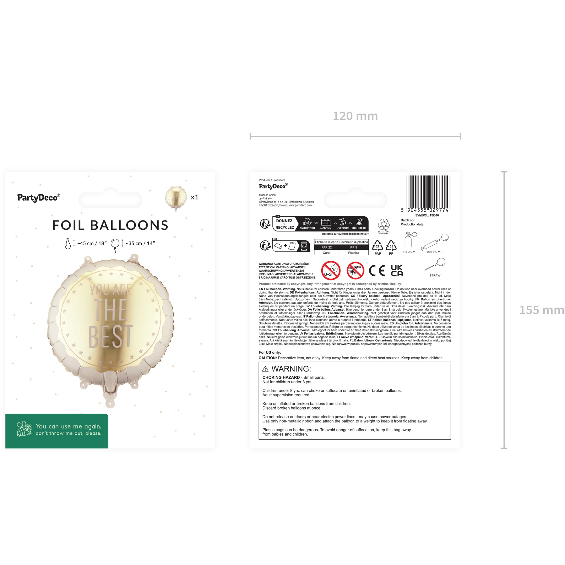 - Afmetingen (opgeblazen): 35 x 35 cm