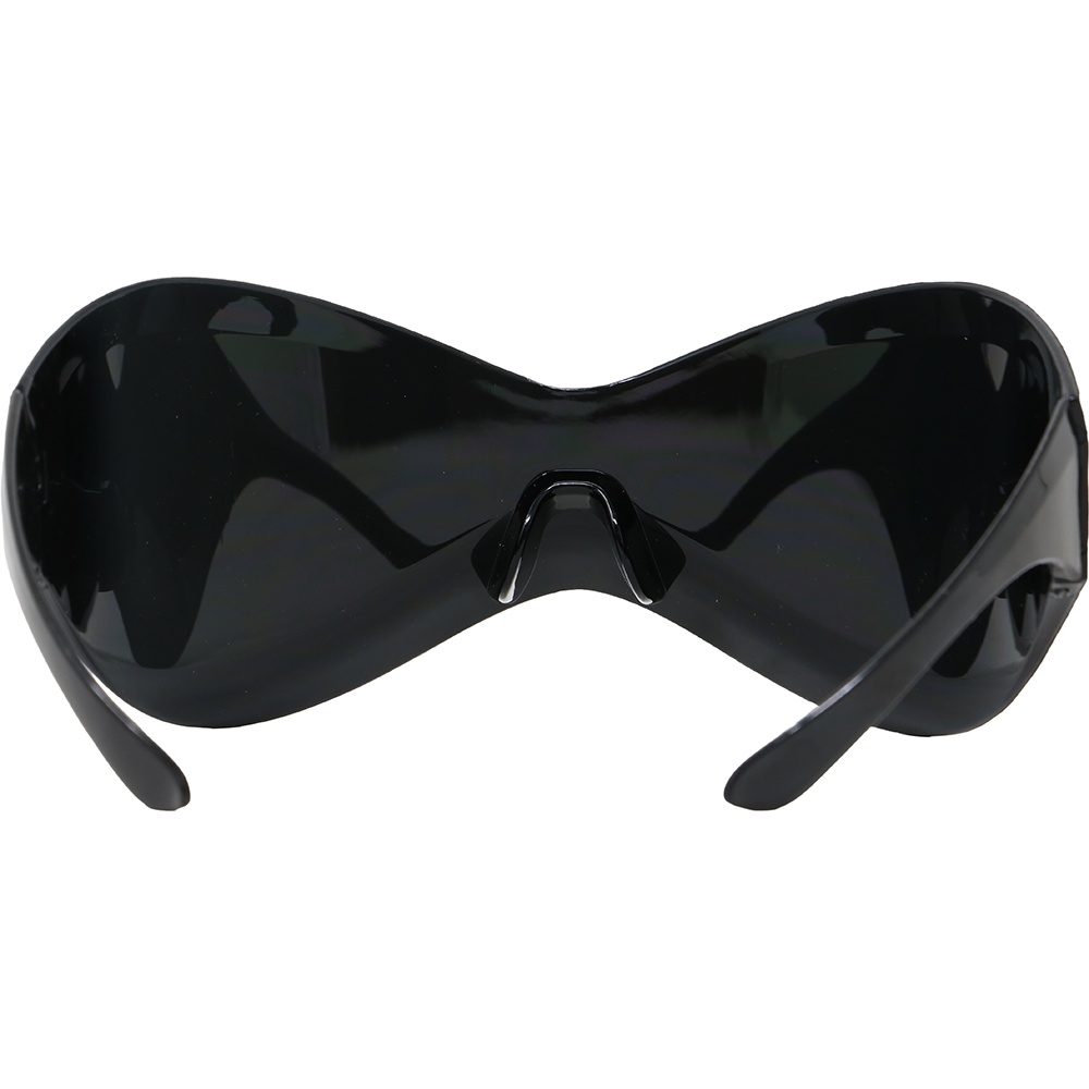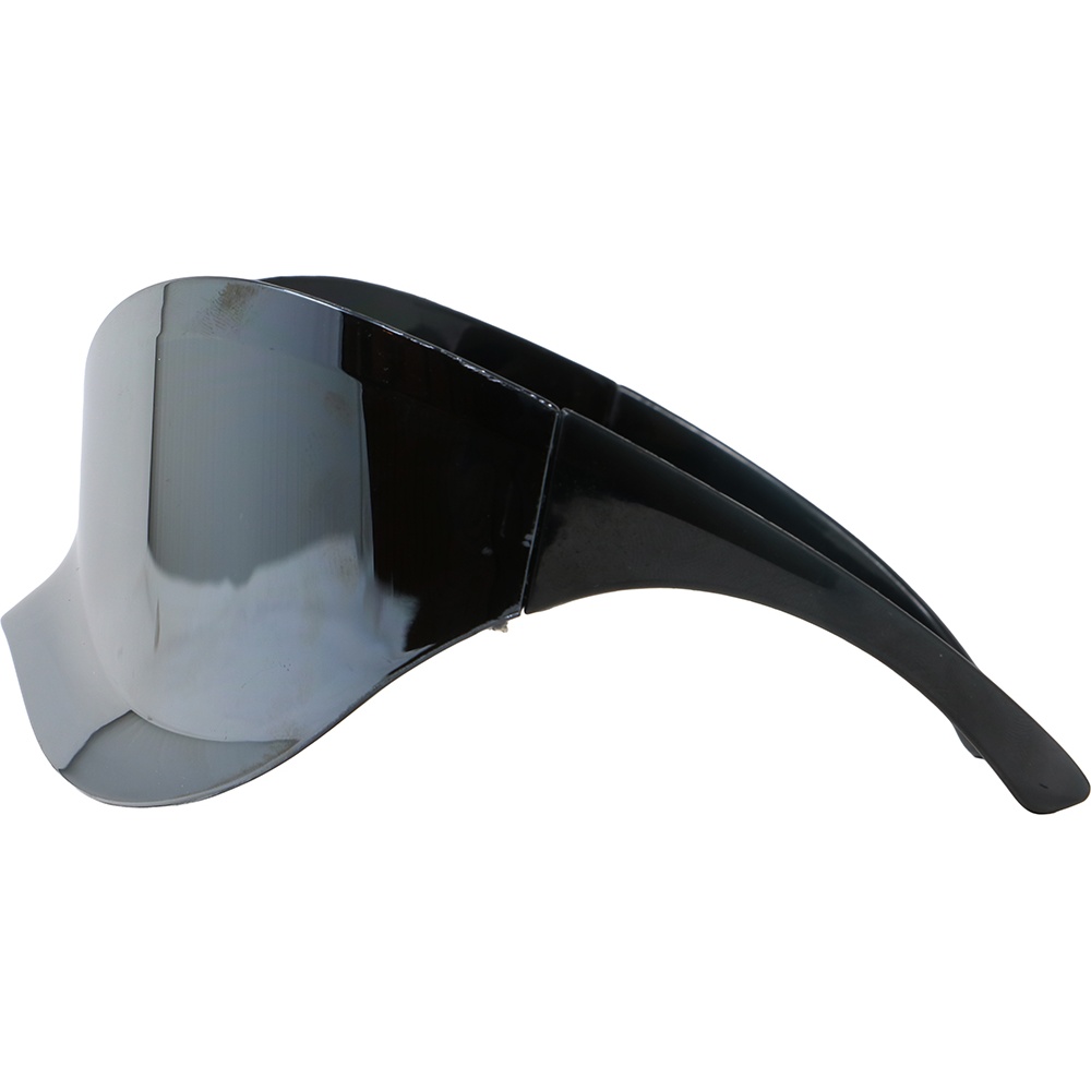 Spiegelende futuristische bril, ontworpen om op te vallen op festivals, raves en tijdens carnaval. De spiegelende afwerking en het omsluitende ontwerp zorgen voor een moderne, fotogenieke look die op elk evenement de aandacht trekt.