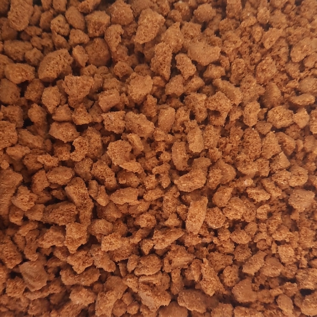 Gekarameliseerde, verkruimelde koek met een knapperige textuur en geroosterde smaak, speciaal ontwikkeld voor professioneel gebruik in banketbakkerij en horeca.