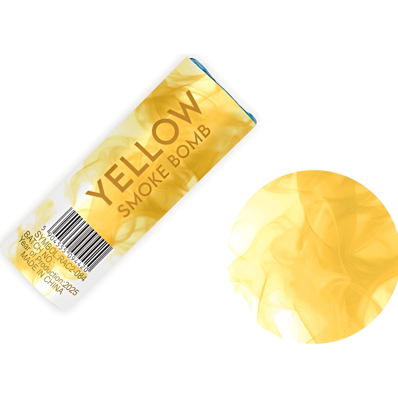 Rookbom met geel poeder die een dichte, opvallende rook met intense kleur produceert. Het compacte ontwerp is speciaal ontwikkeld om indrukwekkende visuele effecten te realiseren bij fotoshoots en evenementen.