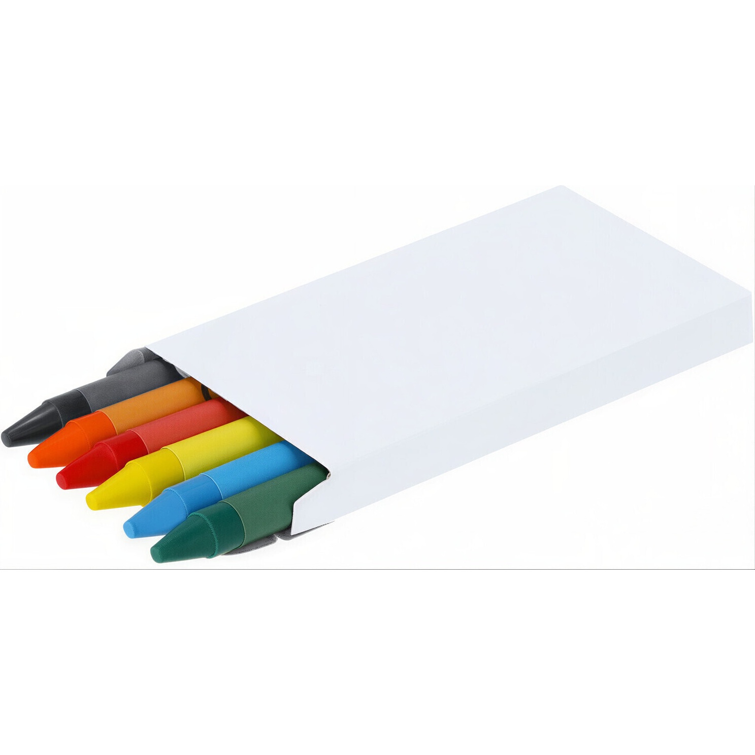 Gekleurde waskrijtjes in witte doos - 6 stuks