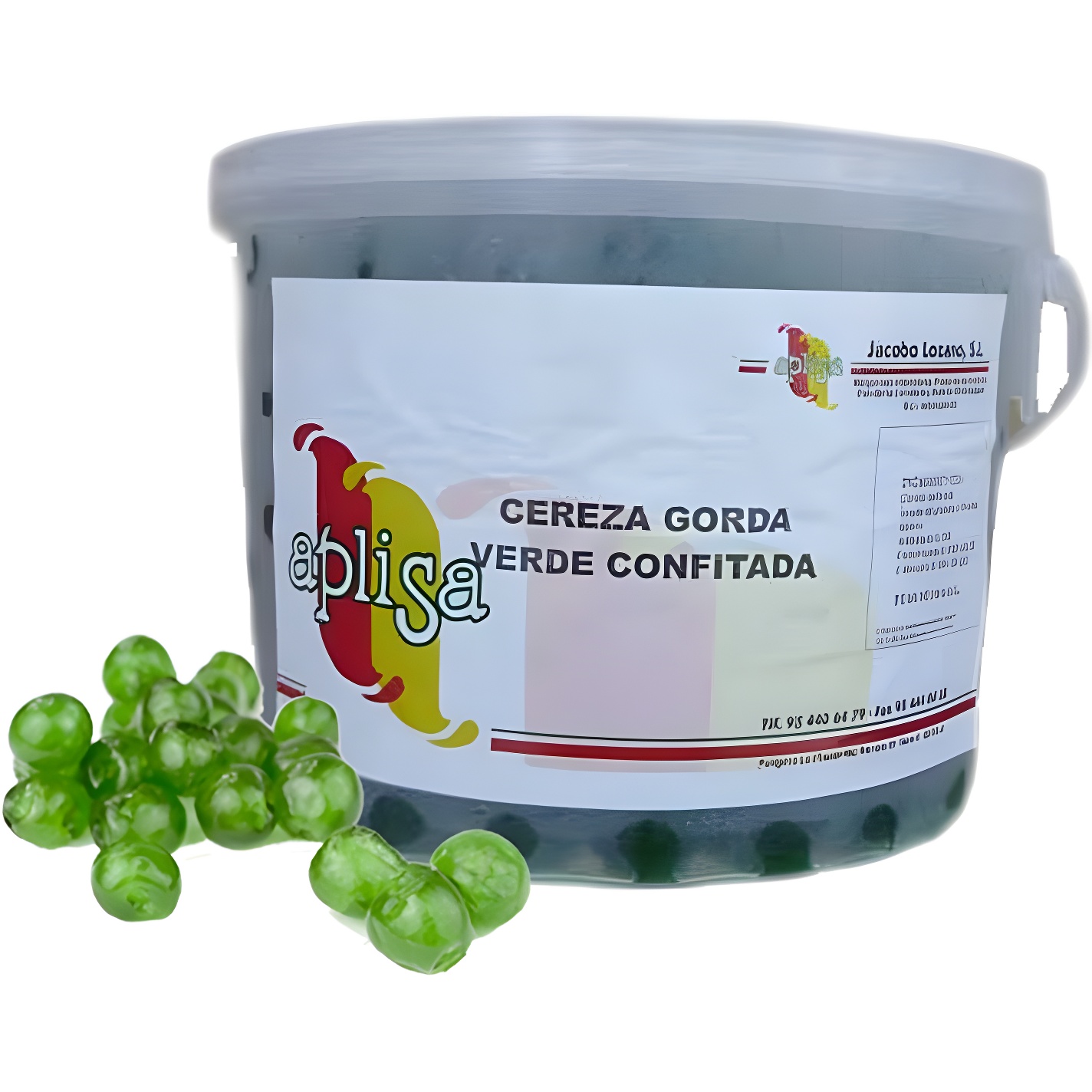 Gekonfijte groene kersen van professionele kwaliteit, speciaal ontwikkeld voor banketbakkerij en horeca.