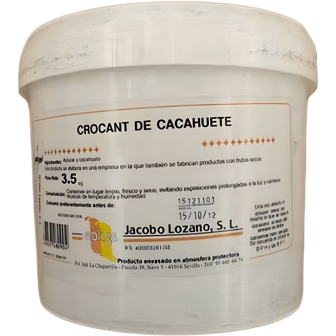 Extra krokante pindencrocant, ontwikkeld om smaak en een professionele afwerking aan uw bereidingen te geven. Wordt geleverd in een emmer van 3,5 kg - praktisch voor werkplaatsen, bakkerijen en patisserie. Verpakt onder beschermende atmosfeer om versheid en krokantheid te behouden. Geschikt voor coeliakiepatiënten (glutenvrij) en zonder toegevoegde kleur- of conserveermiddelen. Niet geschikt voor diabetici of voor personen met een pinda-allergie; kan sporen van andere noten bevatten. Na opening alleen de benodigde hoeveelheid uit de verpakking halen en de verpakking goed sluiten om opname van vocht te voorkomen.