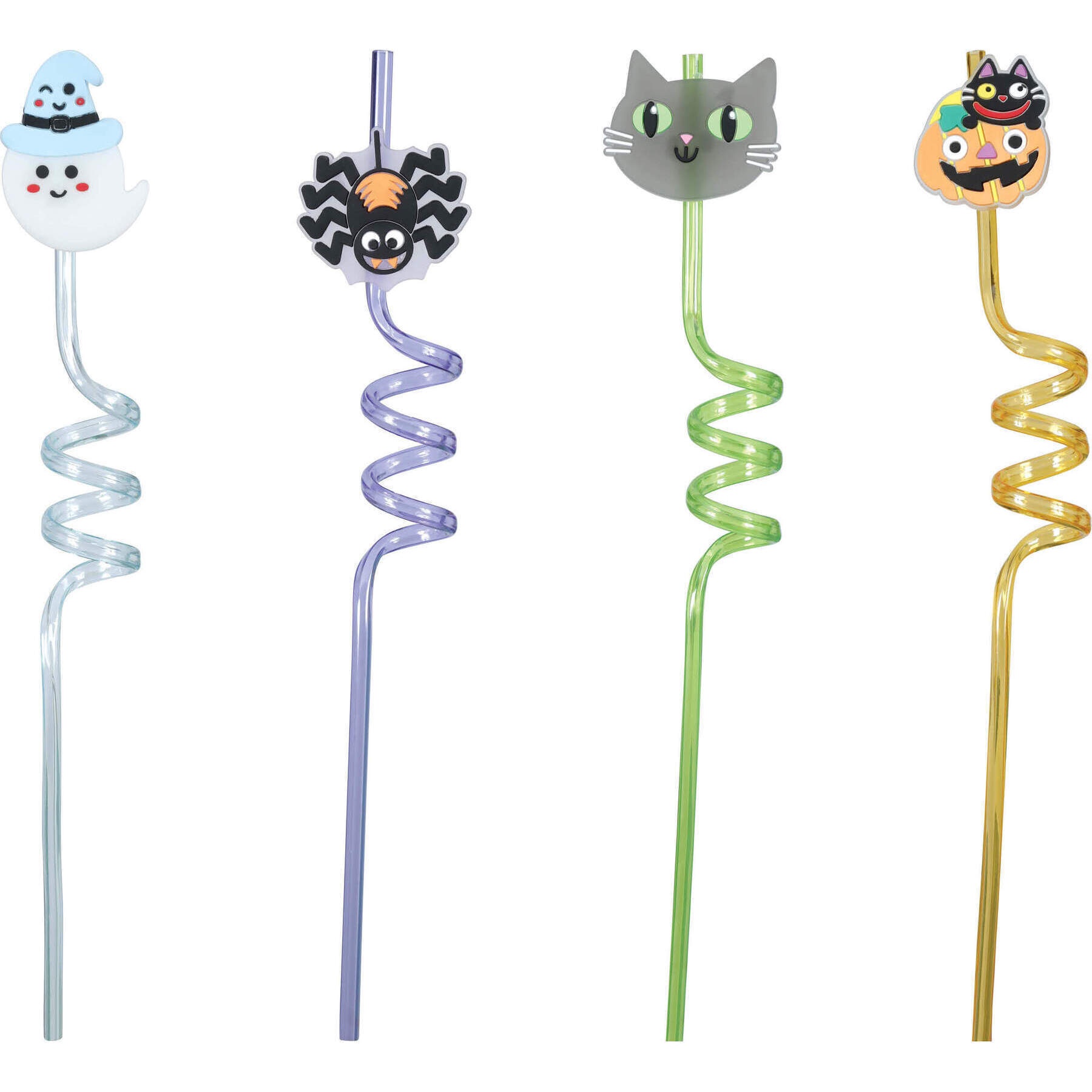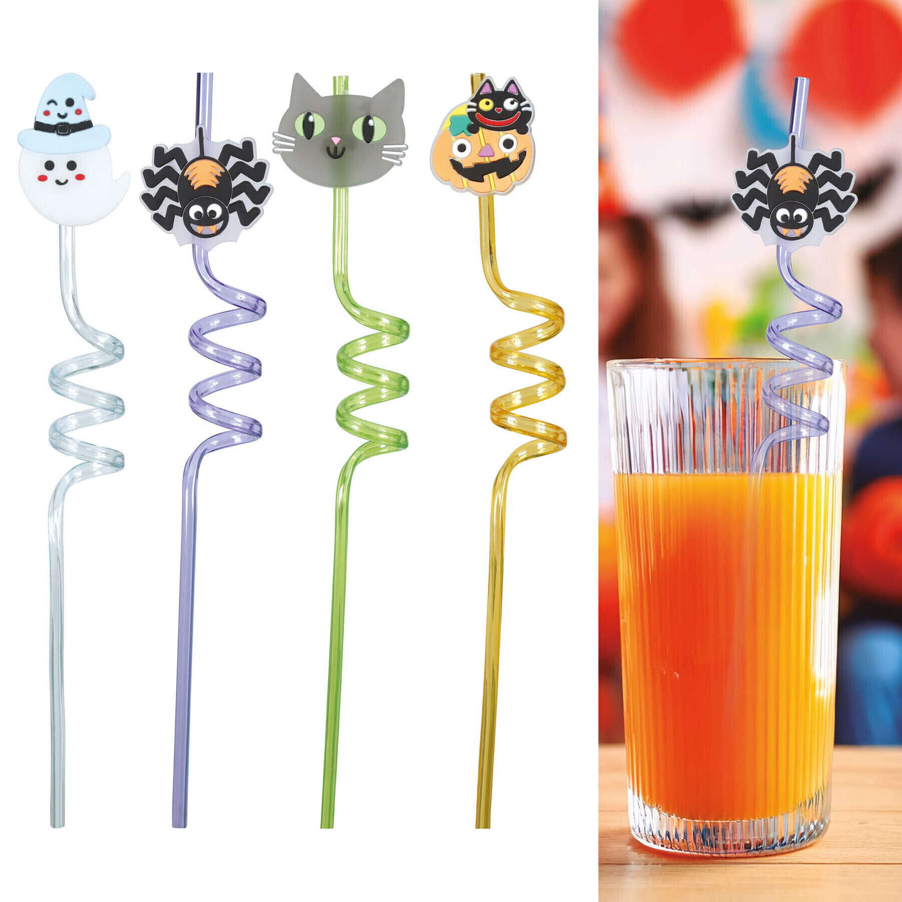 Gesorteerde Halloween plastic rietjes - 4 stuks