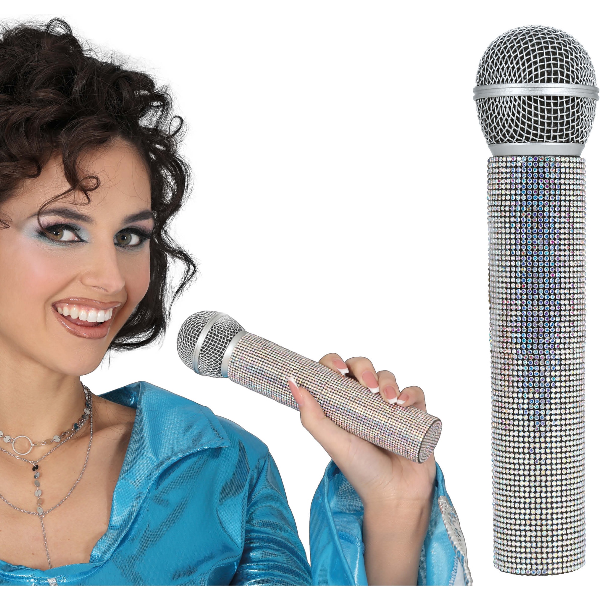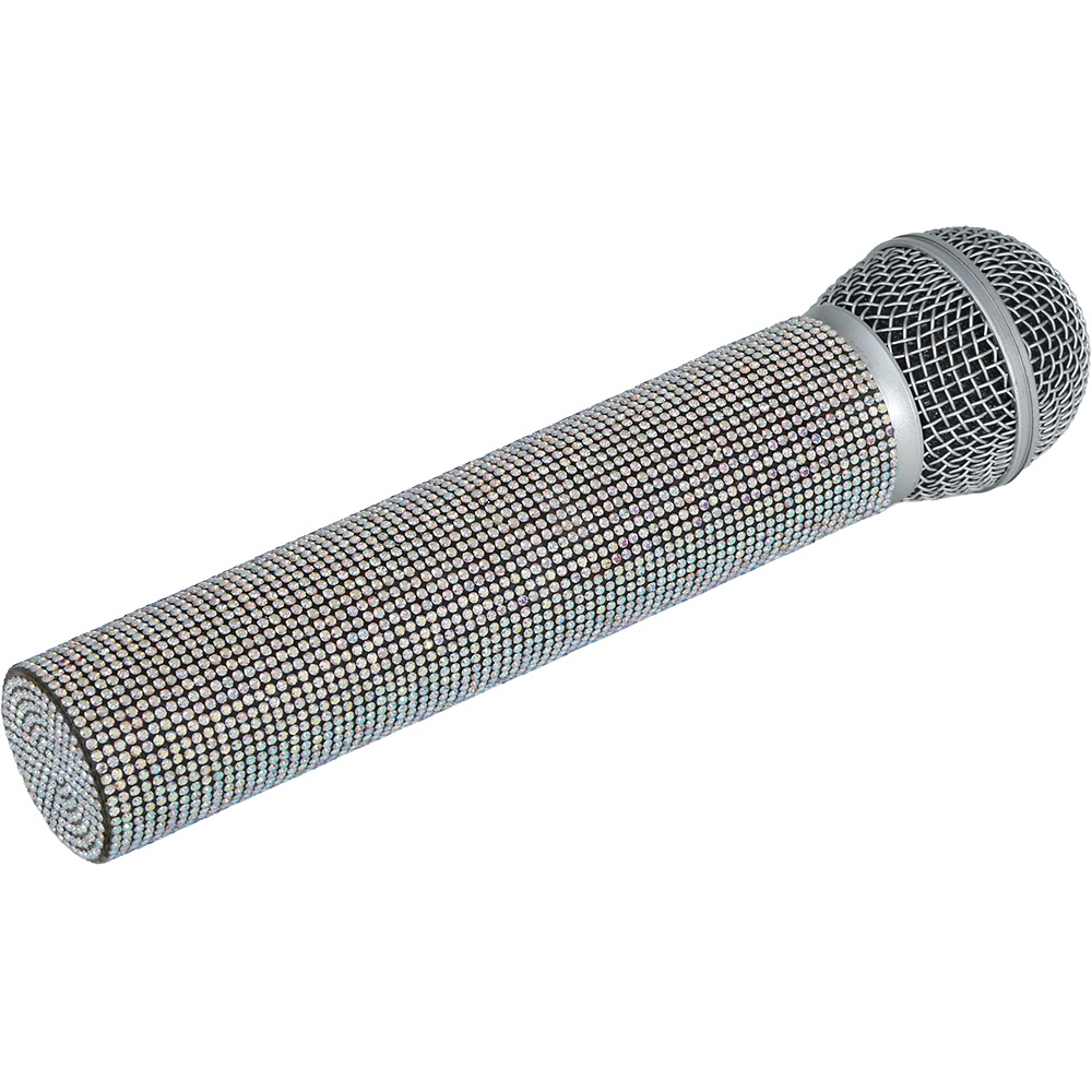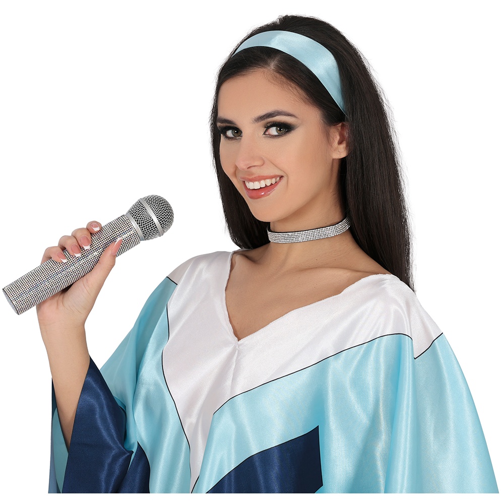 Laat je optreden stralen met deze microfoon in ABBA?stijl, ontworpen om een retro en glamoureus accent aan je kostuums en optredens te geven. De glanzende afwerking met strasssteentjes reflecteert het licht en trekt alle blikken naar het podium. Lichtgewicht en prettig in de hand, ideaal voor karaoke, themafeesten en retroshows. Een opvallend accessoire dat elke outfit in een onvergetelijke act verandert.