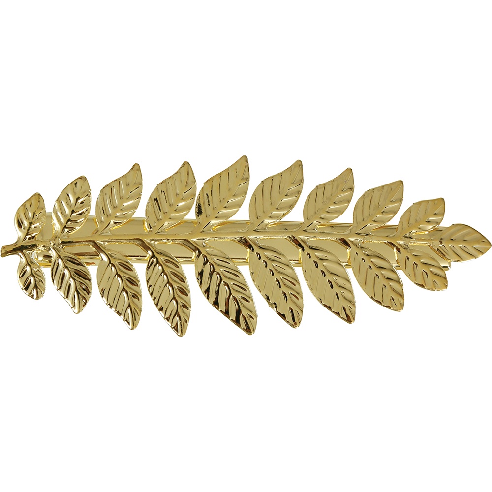 Gouden laurierklem met bladeren geïnspireerd op de klassieke Griekse en Romeinse esthetiek. Geeft elk kapsel een elegante, verfijnde touch. Het klemmechanisme houdt het haar stevig op z'n plek en zorgt voor een snelle, comfortabele bevestiging. Het lichte, opvallende ontwerp accentueert de look zonder te zwaar te zijn.