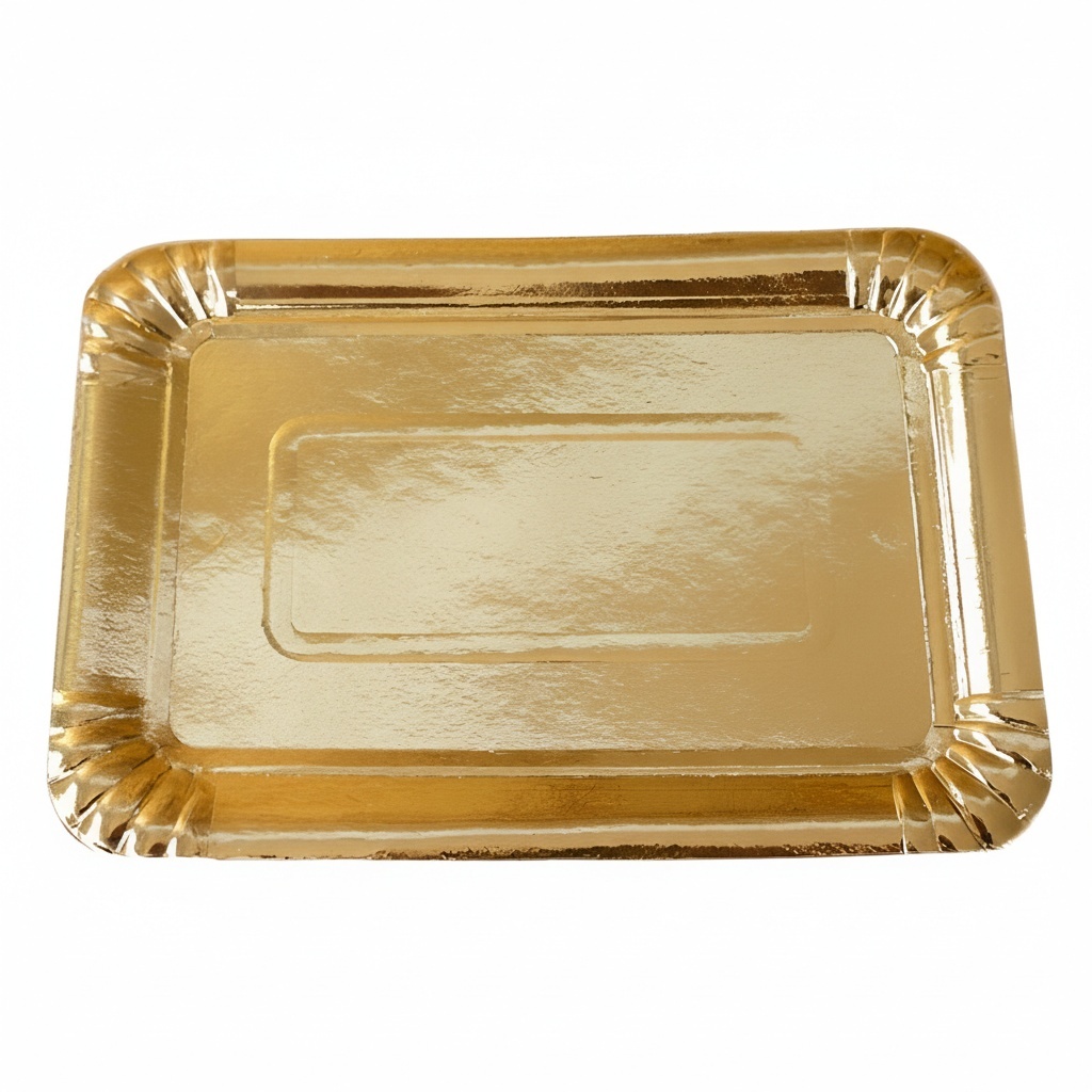 Elegante wegwerpdienbladen met een gouden afwerking voor een verzorgde en opvallende presentatie. Het rechthoekige ontwerp biedt een stabiele basis voor hapjes, desserts en canapés. Ideaal voor wie een verfijnde touch wil toevoegen zonder logistieke gedoe. Grote verpakking die het organiseren van feestjes en cateringdiensten eenvoudiger maakt.