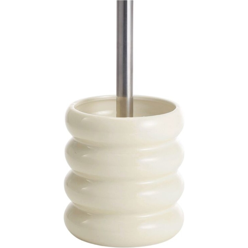Toiletborstelhouder in een decoratieve, minimalistische stijl met een golvend crèmekleurig ontwerp dat warmte en karakter aan de badkamer toevoegt.