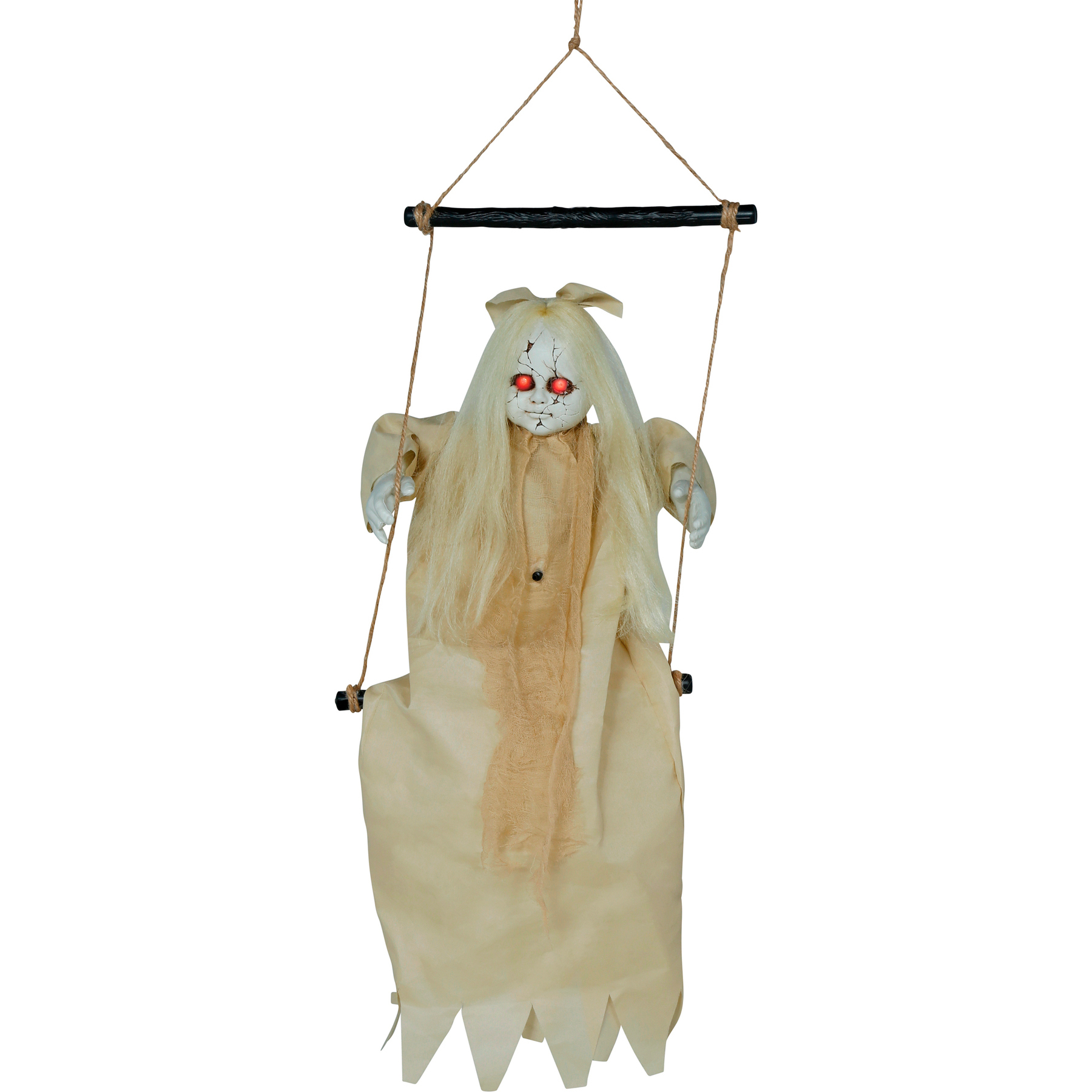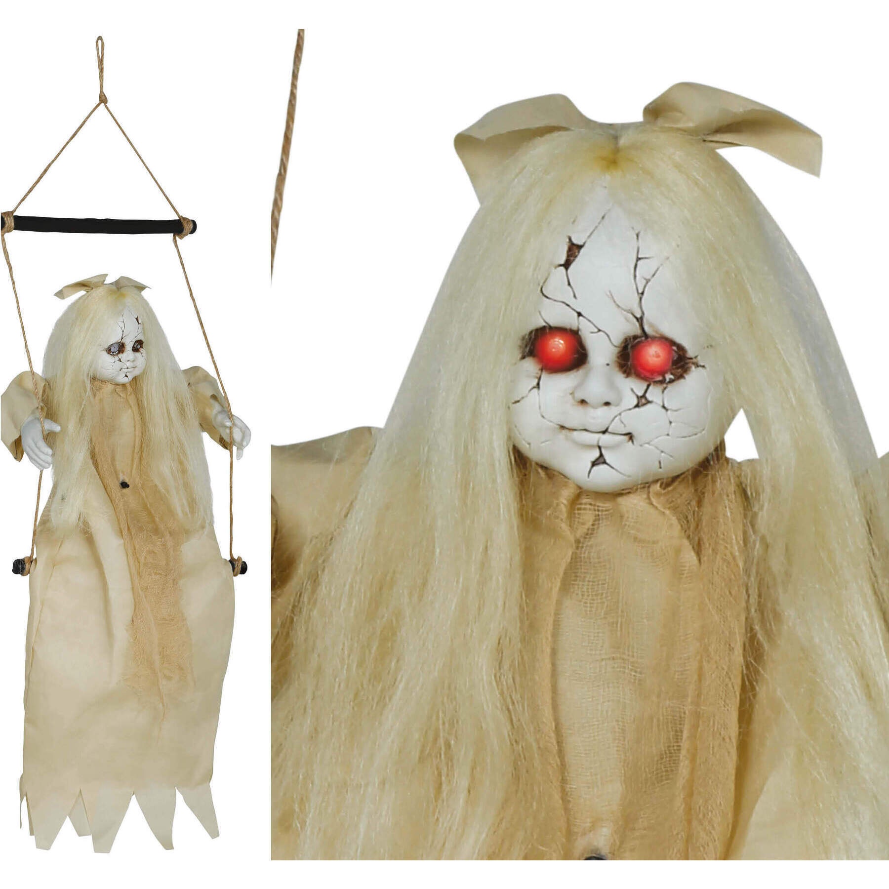 Hangende decoratie van meisje op schommel met licht en geluid van 75 cm