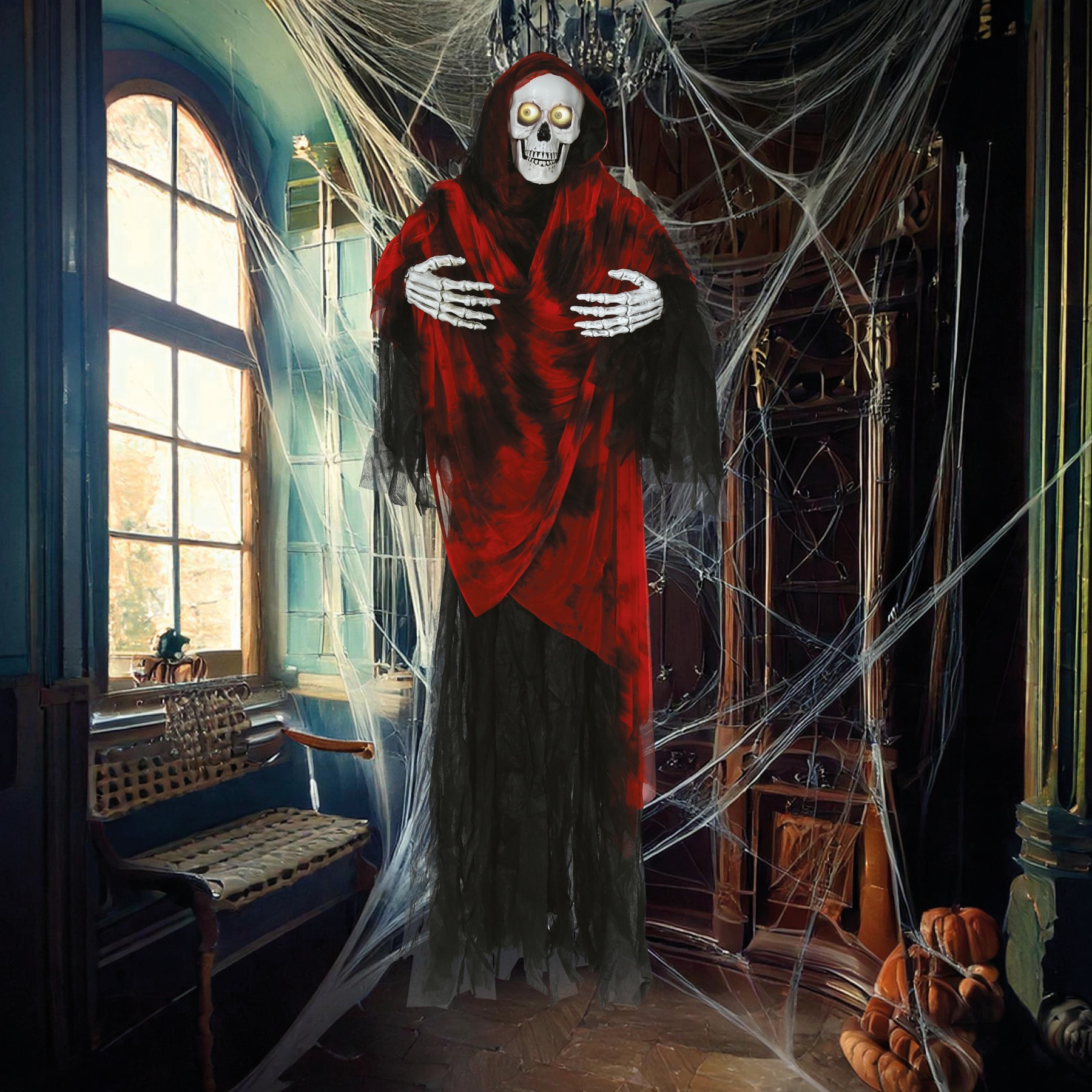 Hangende skeletdecoratie met lichtgevende ogen en beweging, 1,70 m